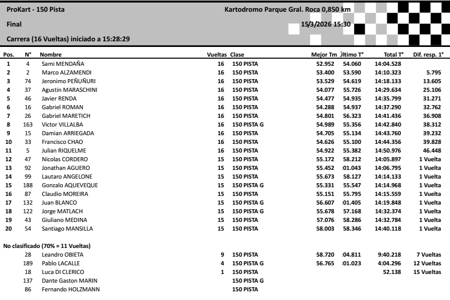 En la 150 Pista ganó Sami Mendaña, mientras que Miguel López festejó en Varrilleros, pero fue excluído por técnica quedando la victoria para Sergio Poli.