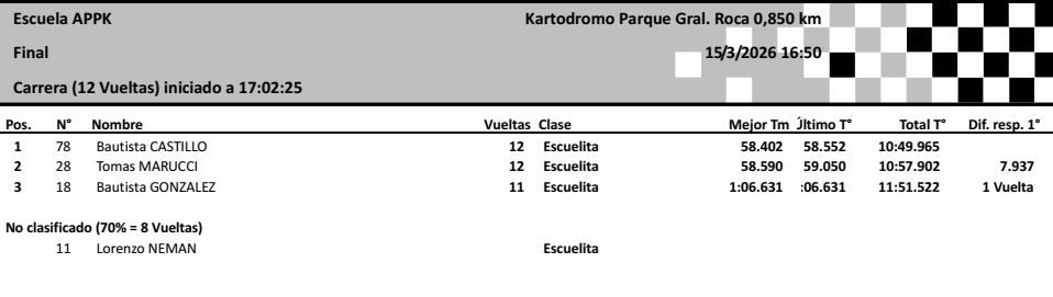 El semillero representado por la Escuela APPK fue para Bautista Castillo, escoltado por Tomás Mariucci y Bautista González.