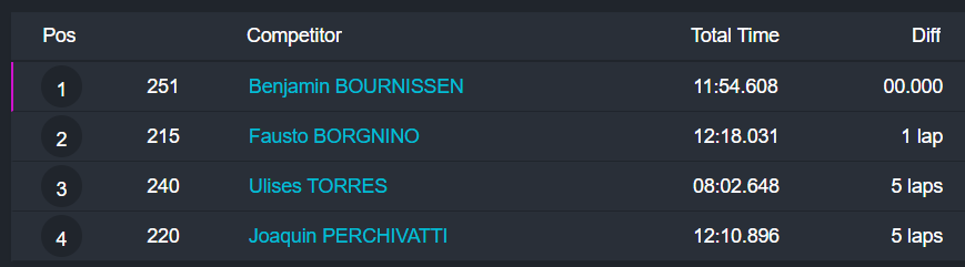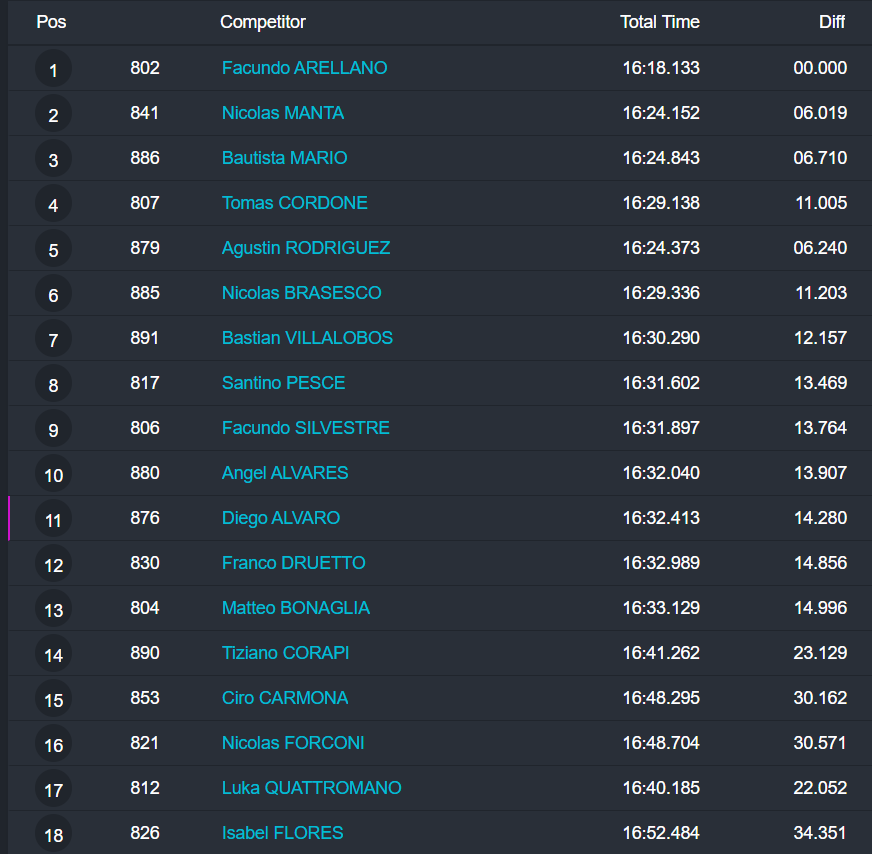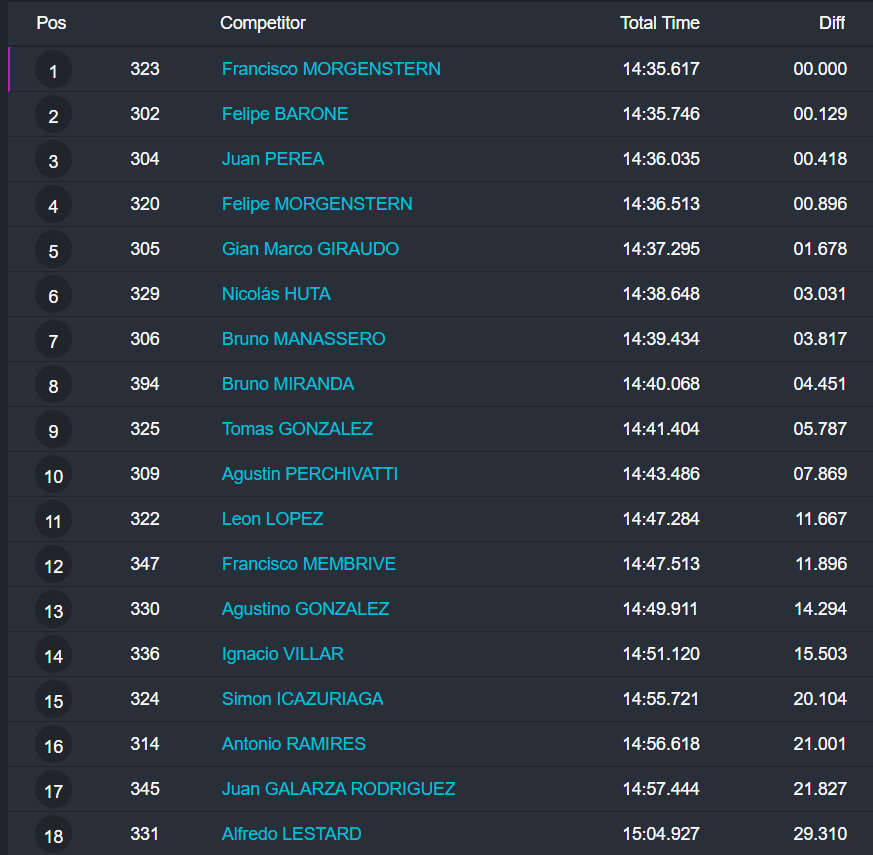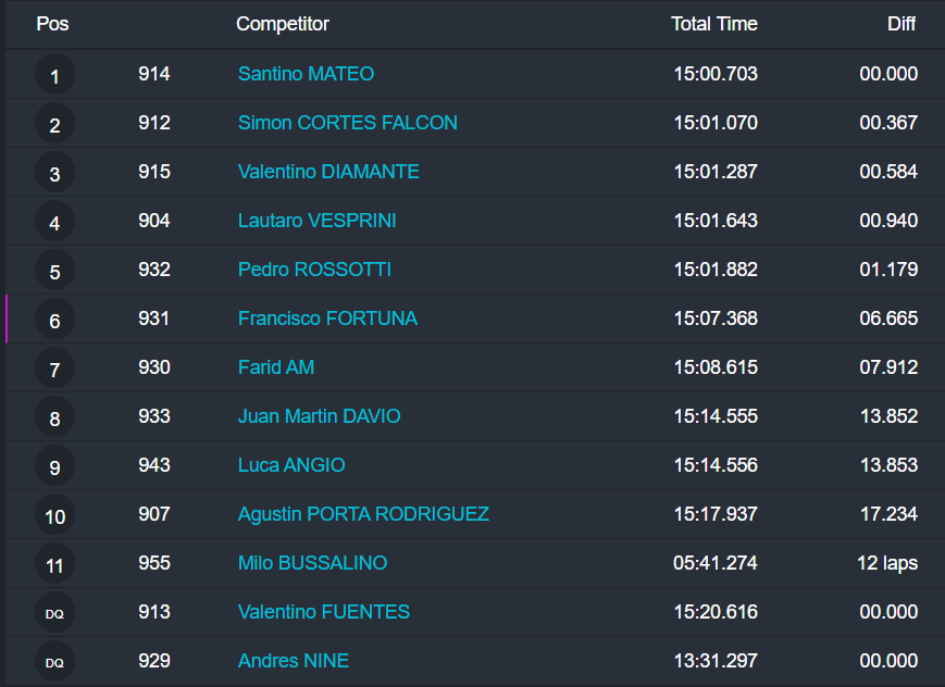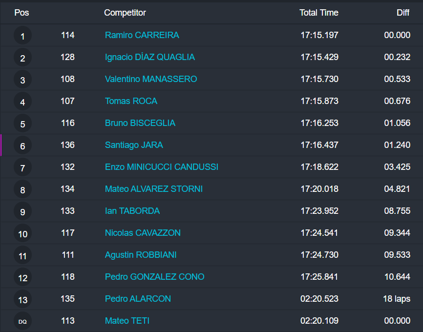 La OKN tuvo fuerte disputa por la punta, pero el cipoleño Juan Ignacio Alessi se impuso con autoridad, al superar a Bautista Panetta y al mendocino Francisco Figueroa.