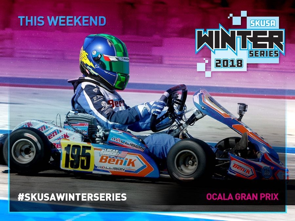 Este jueves comienza la actividad de la segunda fecha doble (y última) del torneo SKUSA Winter Series que se corre con motorización Iame, mientras que la próxima semana ambos viajarán para competir en el Rok Cup Florida Winter Tour, que utiliza motores Vortex. Ambos certámenes se llevarán a cabo en el circuito de Ocala Gran Prix.