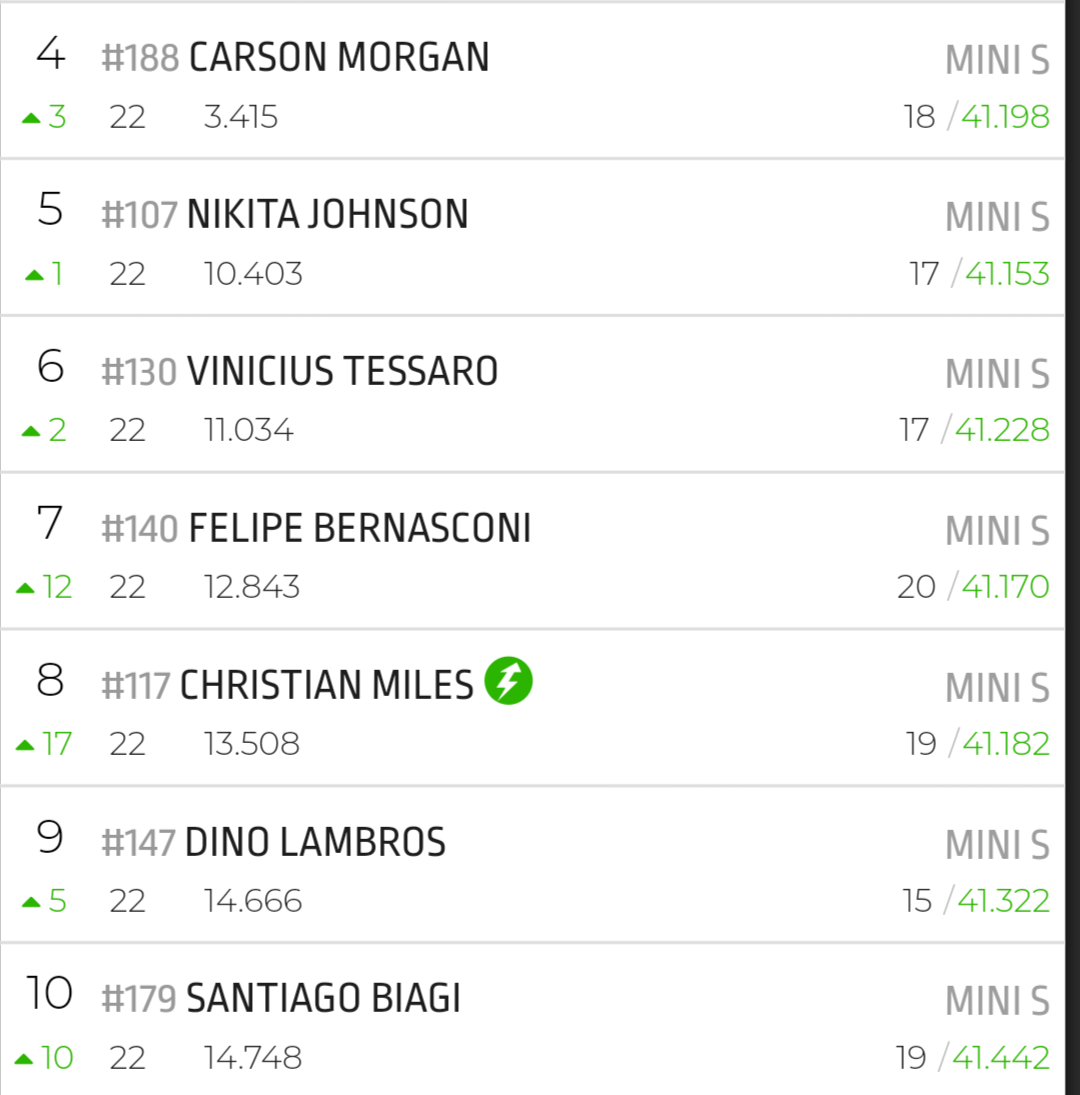 En las carreras finales ambos avanzaron notablemente, donde Felipe ganó doce posiciones para llegar 7° y Santiago hizo lo propio posta quedar 10°.