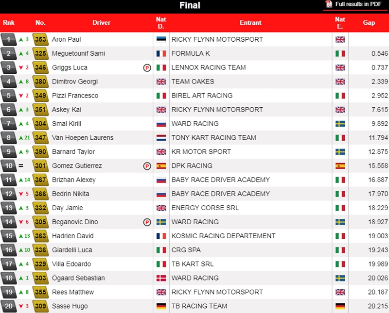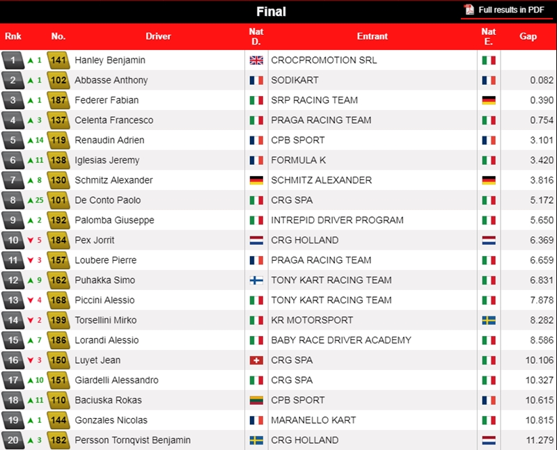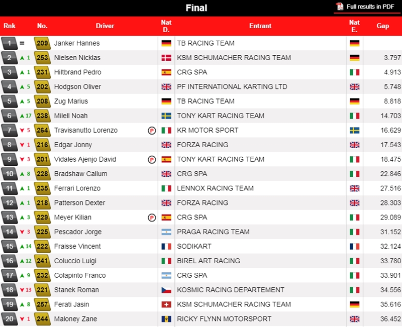 Buenas tares complieron Colapinto y Pescador, que pudieron llegar y terminar la final. Jorge (Praga Oficial) tuvo un enorme desempeñó en los heats, mientras que Colapinto (CRG Oficial) tuvo una destacada Final, donde creció 9 posiciones.