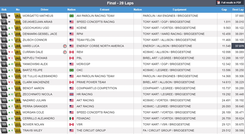 “Estamos contentos porque tuvimos un fin de semana increíble, nuevamente ganando con Matheus Morgatto, que lo hicimos el domingo pasado en SKUSA y ahora en la Winter. También con la victoria en Shifter Senior y los podios en Micro y Senior (con provisión de motores). Es bueno también Vinius Tessaro largó último la final y remontó 28 posiciones llegando octavo” explicó Ariel Castro.
