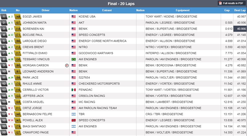 Andrés Hoffmann se lució en Estados Unidos, al ser amplio dominador de la divisional y poder registrar un importante triunfo con el Tony Kart que le prepara el team Bordogna. El piloto de General Ramírez cumplió con una actuación memorable.
