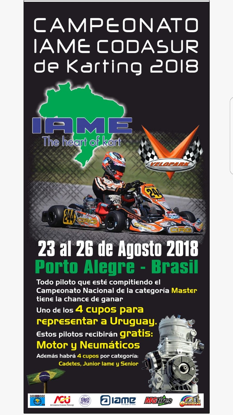 Tremenda oportunidad para los pilotos uruguayos de las categorías Cadetes, Junior IAME y Master.