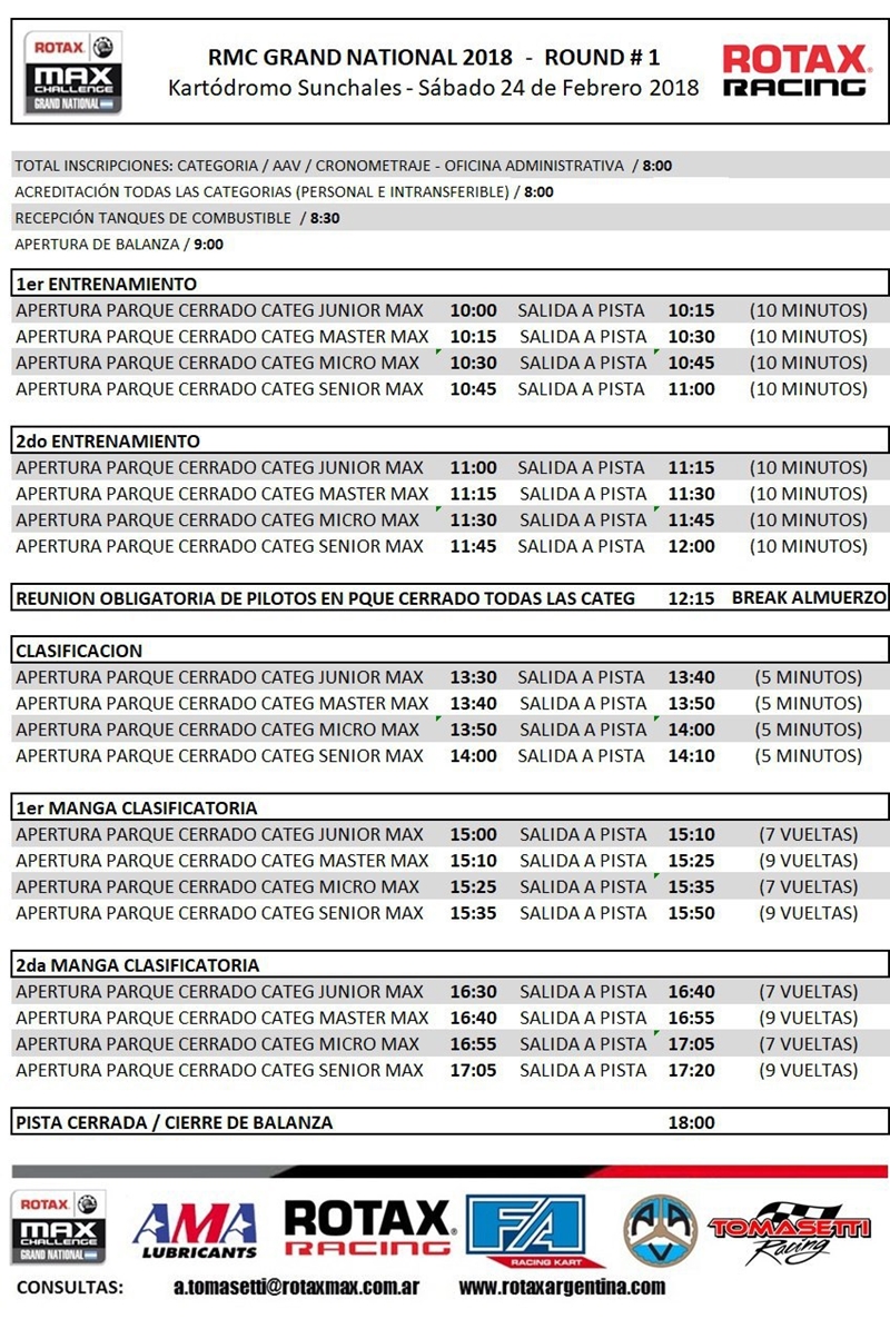 Como es habitual, Rotax Grand National tendrá en pista las siguiente divisionales: Micro Max, Júnior Max, Senior y Máster Max, a lo que se suma la categoría Nacional (chasis nacionales).