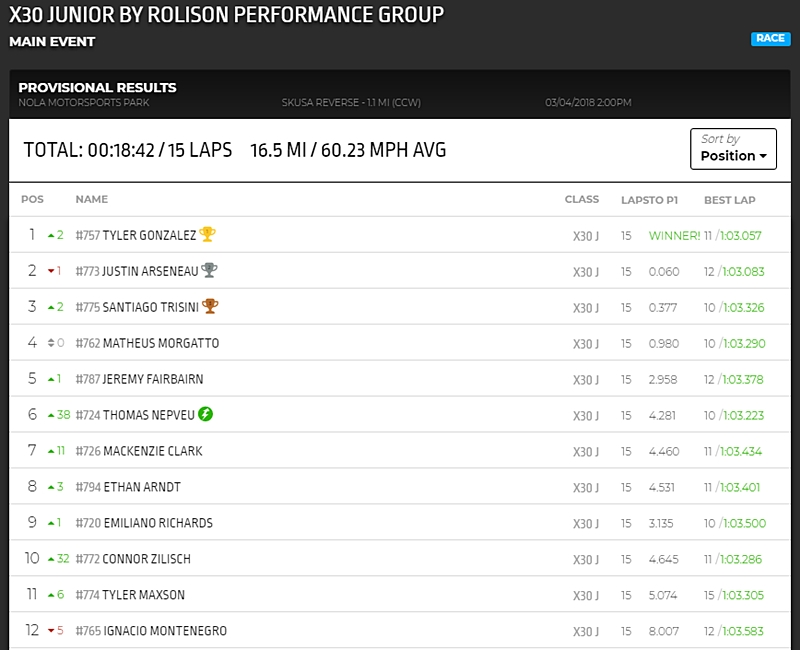Luego de finalizado el Winter Series, SKUSA comenzó el torneo Pro Tour 2018 (motores Iame) que cuenta con 3 fechas dobles y una especial en Las Vegas. El primer evento se denominó “Winternationals”y fue el pasado fin de semana en el circuito Nola Motorsport Park ubicado en Nueva Orleans.