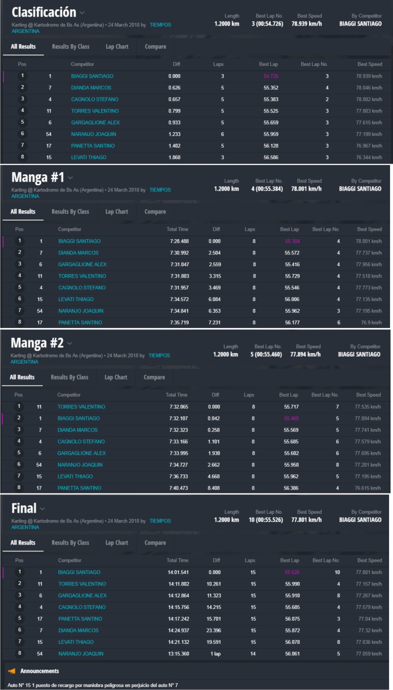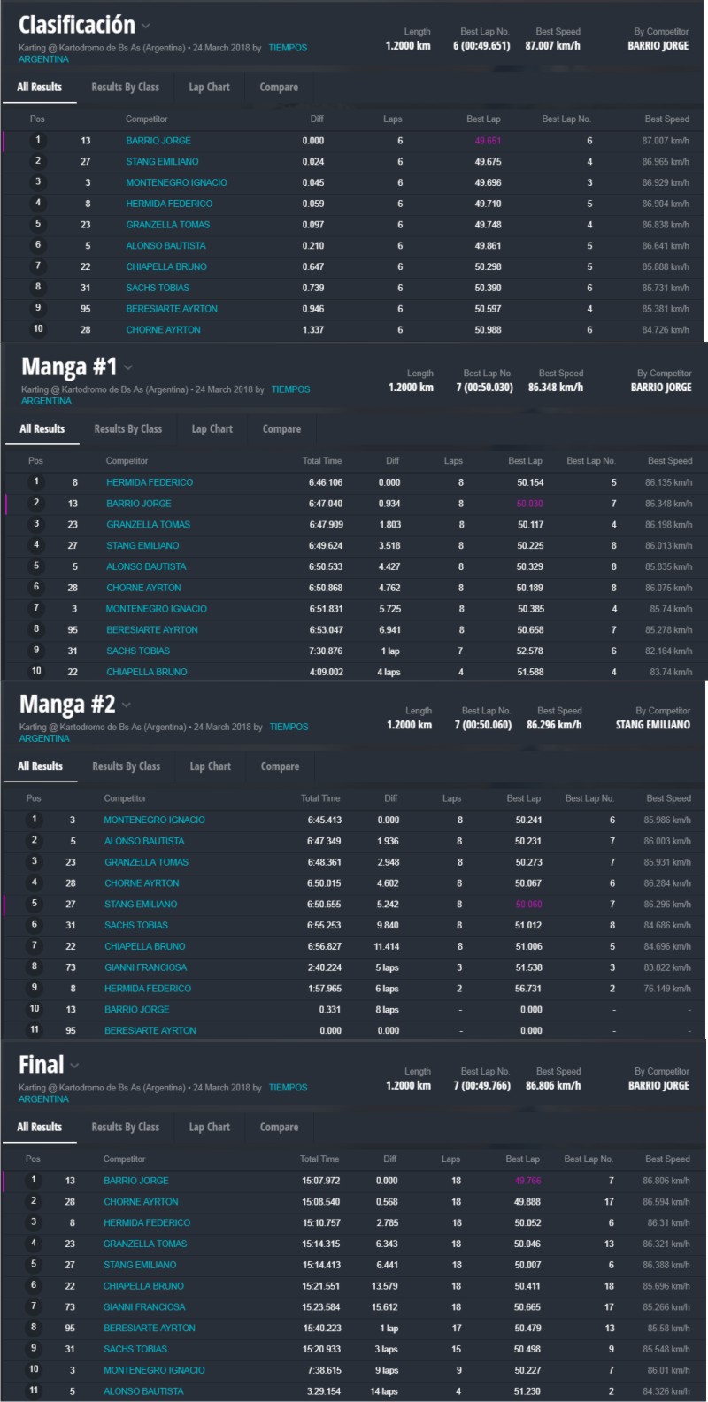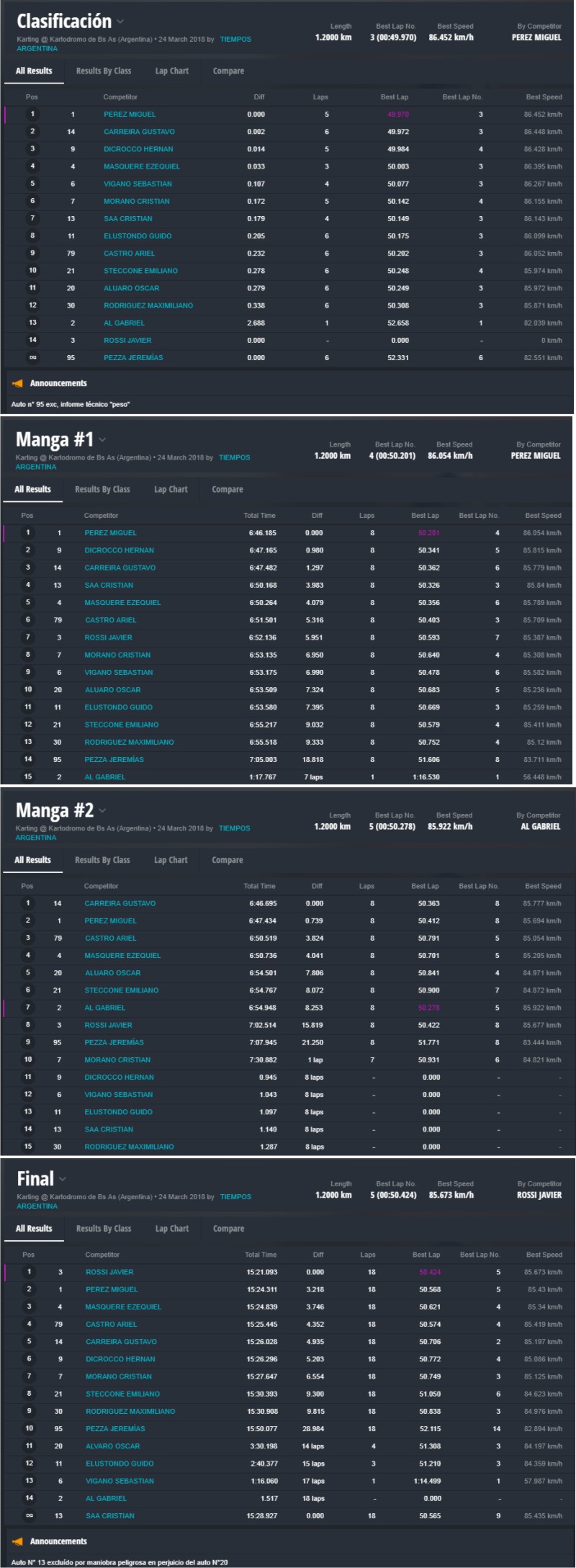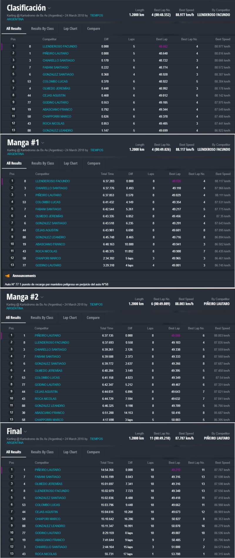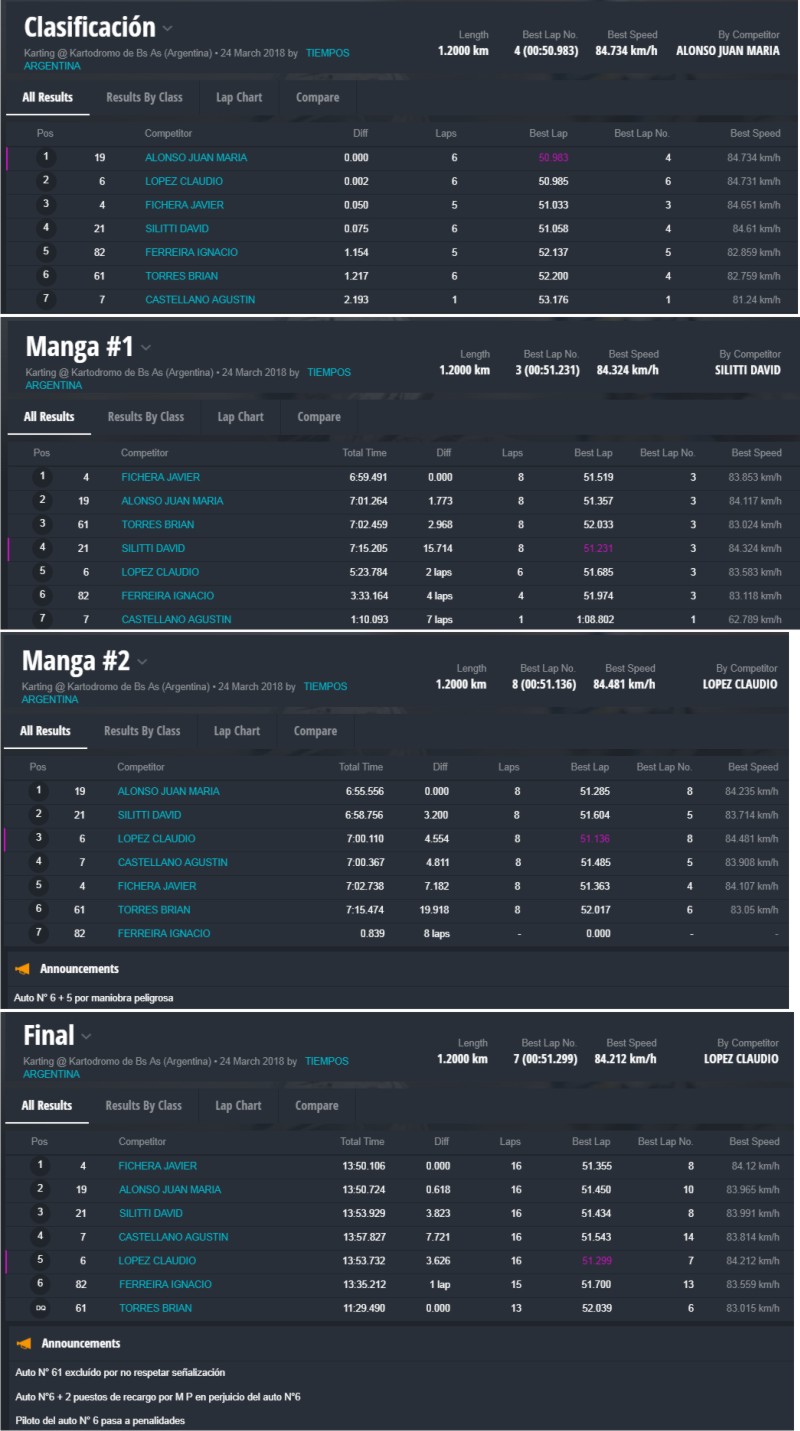 En lo estrictamente deportivo, se vieron competencias muy interesantes que dejaron como ganadores a Thiago Falivene en la categoría Mini y Jorge Barrio festejó en Júnior. Los actuales campeones Santiago Biagi (Promocional) y Lautaro Piñeiro (Pro) triunfaron en sus categorías, Javier Fichera ganó en la “Light” y Javier Rossi se quedó con una apasionante final de la clase Senior.