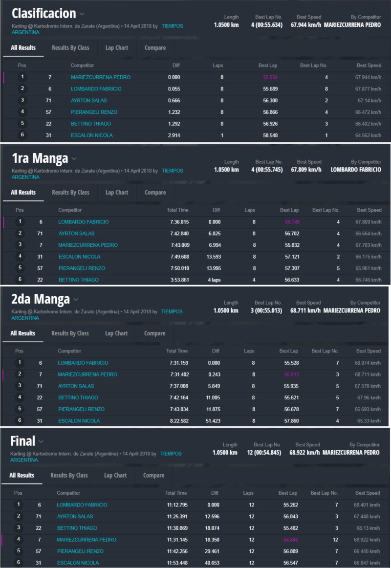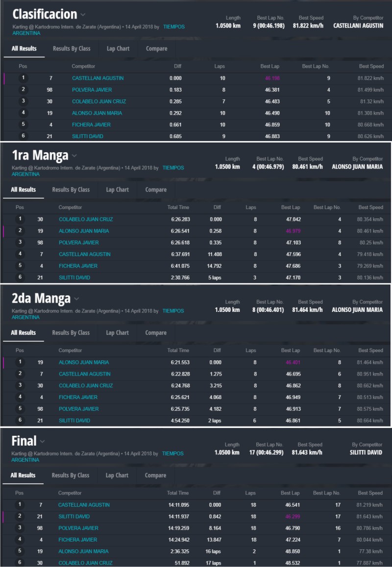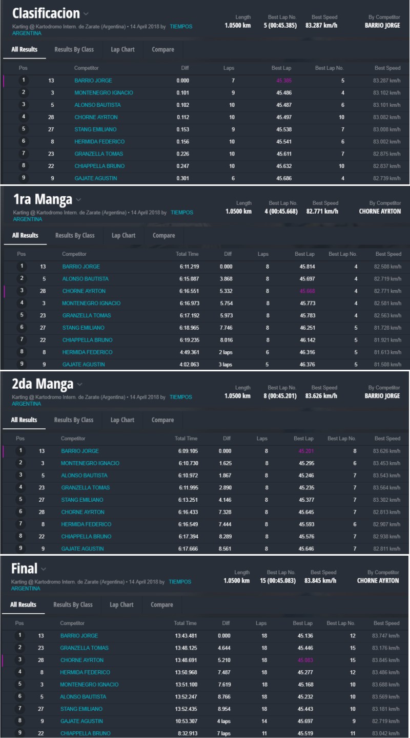 El de la costa atlántica JORGE BARRIO, se quedó nuevamente con lo mejor en clasificación, con un tiempo de 45.385. Los nueve pilotos quedaron encerrados en 301 milésimas.