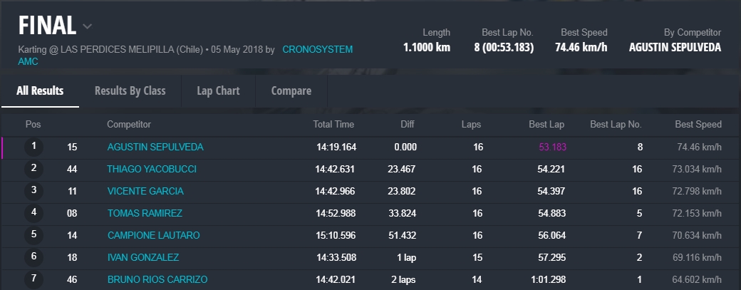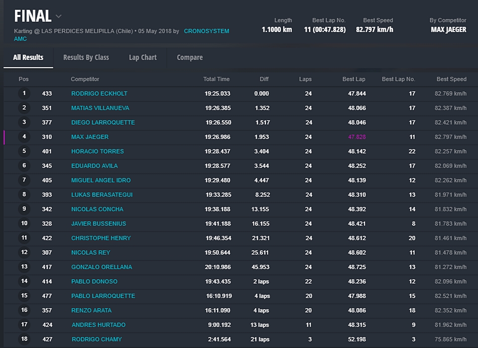 En la categoría Micro Max festejó su primer podio Thiago Yacobucci, quien en su segunda carrera del año terminó 2º detrás del local Agustín Sepúlveda. El piloto de 8 años había clasificado tercero, posición también logró en la pre final.