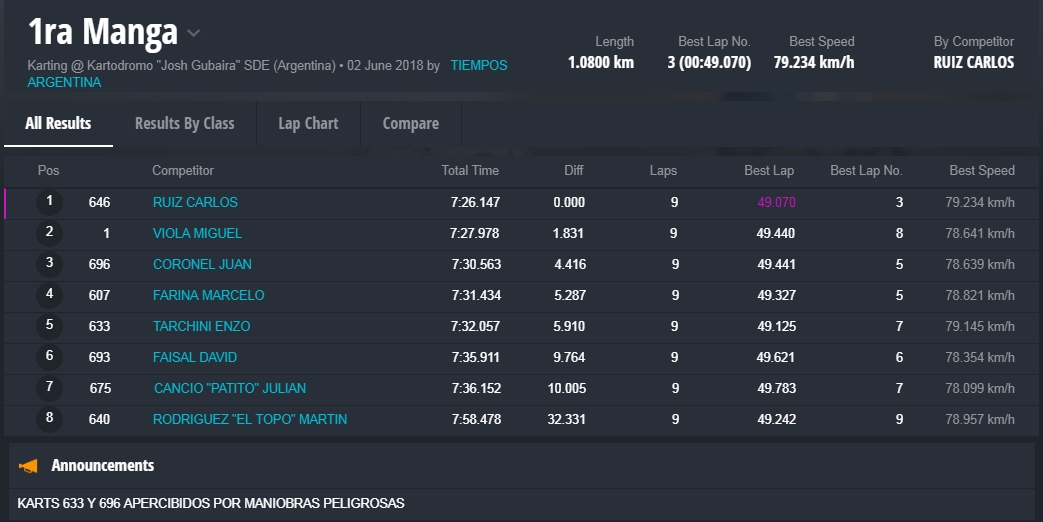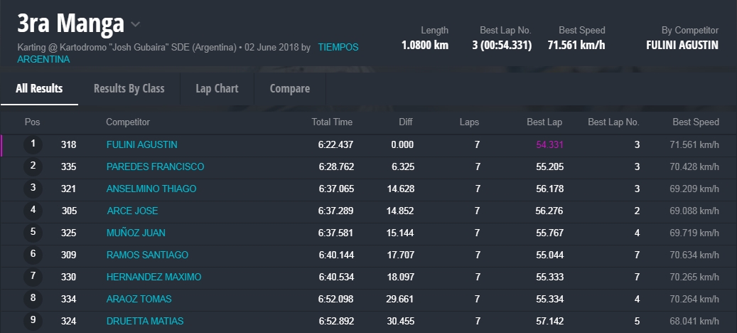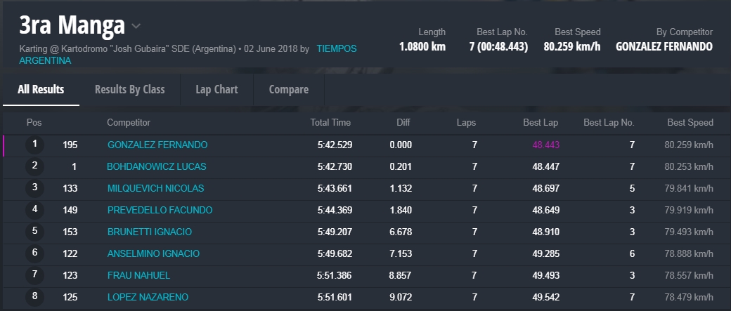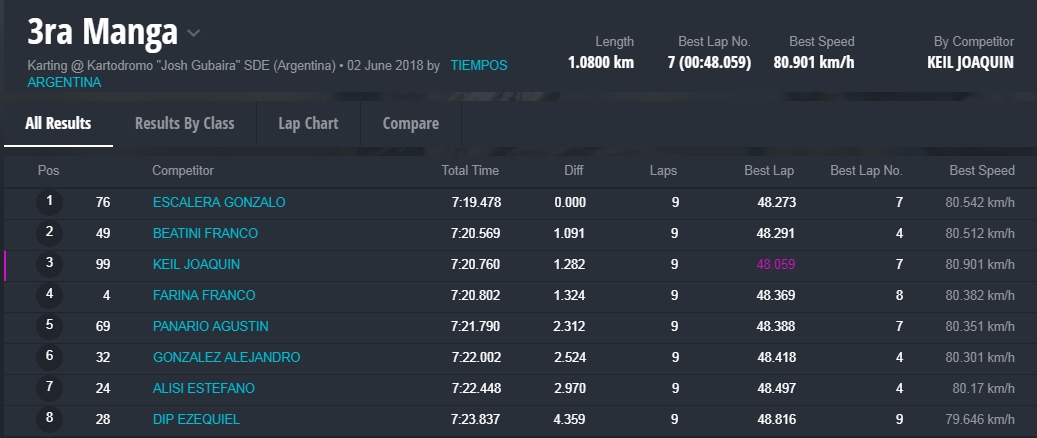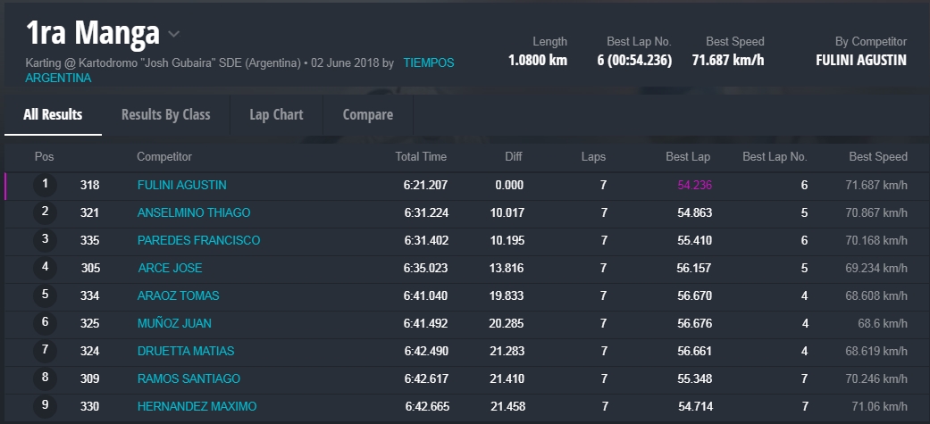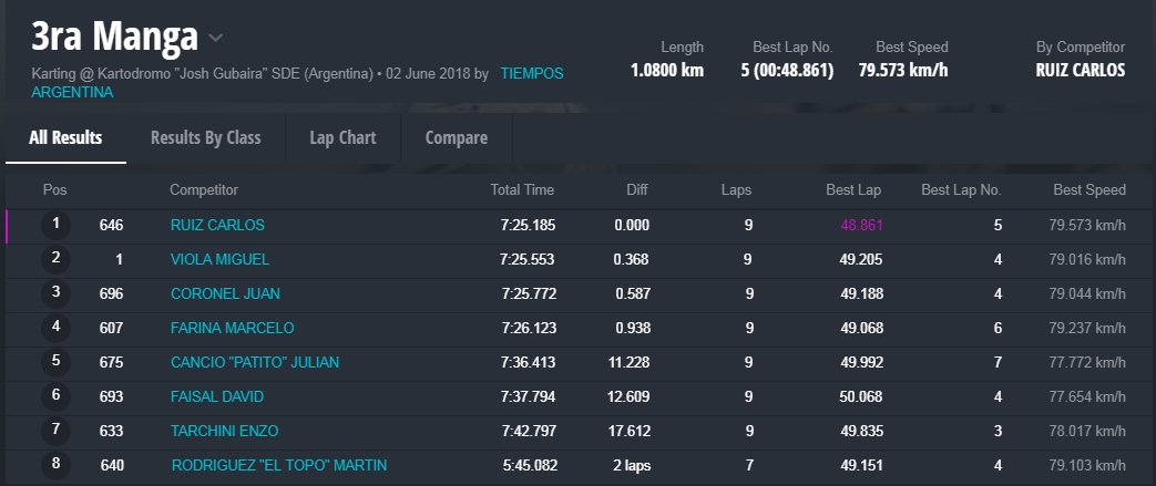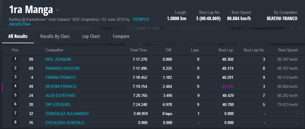 Y en la final, la gran sorpresa fue la que dio el local, Marcelo Farina, que se alzo con el cetro, luego de tremendas batallas en donde, Juan Coronel, otro local, punteo durante gran parte del desarrollo de la misma, todos en una franca lucha en donde estuvieron involucrados, el monarca 2017 de la divisional, Miguel Viola, Rodriguez , otro santiagueño , Enzo Tarchini, en fin grandes luchas con gran predominio de los pilotos locales , pero ninguno desentono en esta fiesta que nos dieron de sorpazos en el escenario de Santiago.