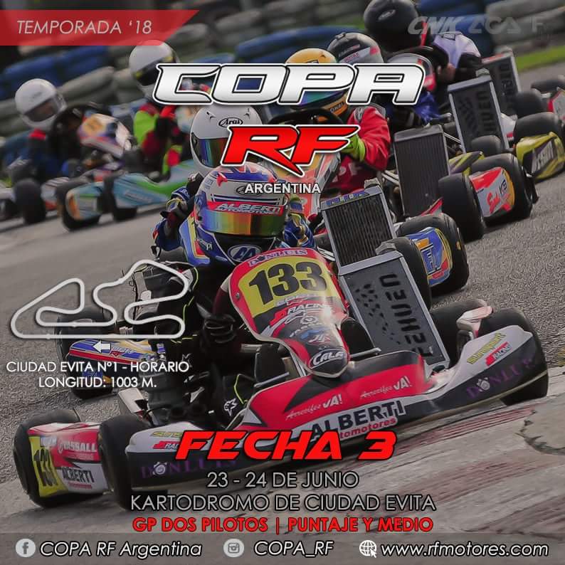 Pasada la fecha doble que sirvió para abrir el 2018, esta tercera cita viaja hasta el circuito número 1 (sentido horario) del Kartódromo de Ciudad Evita, donde se esperan que nuevos pilotos se sumen a la Copa RF.