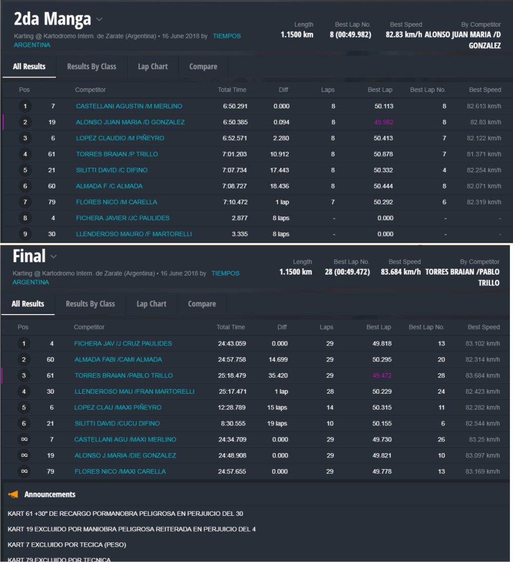 Hoy sábado hubo “clima mundial” ya que la organización dispuso de una pantalla gigante para ver el partido de fútbol Argentina – Islandia, mientras los motores aceleraban en la pista. Hubo entrenamientos, clasifica y una manga por divisional. El domingo hubo otra manga y las finales, donde las categorías mayores tuvieron competencias con invitados.