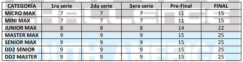 Además, te dejamos la tabla con la cantidad de vueltas que tendrá cada competencia, según indica el reglamento de la prueba.