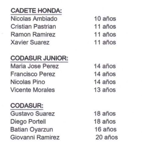 En los últimos días se confirmó la lista de pilotos que representarán a Chile en el Sudamericano CODASUR, que se desarollará del 22 al 25 de agosto en el Kartódromo Velopark, muy cercano a Porto Alegre, en Brasil.