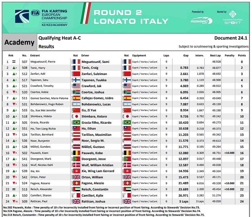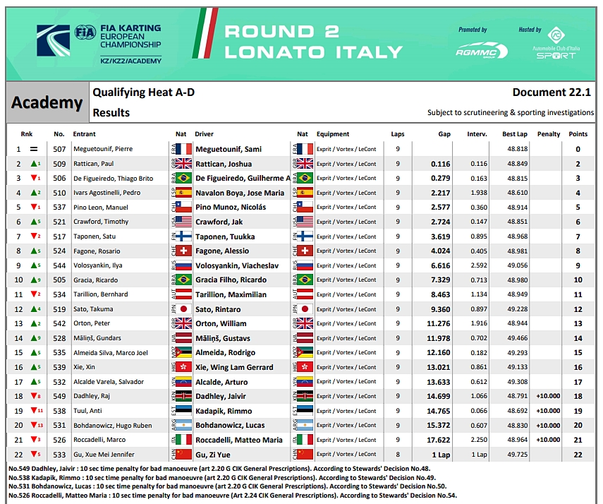 Terminó el segundo día de pista en el CIK FIA Academy Trophy que se desarrolla en Lonato, Italia. Te mostramos los principales resultados.