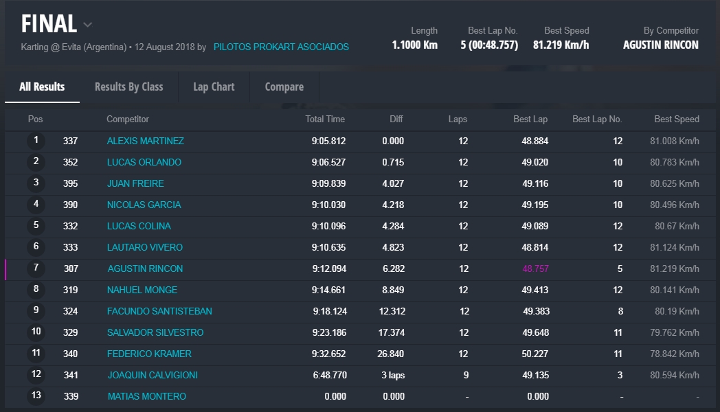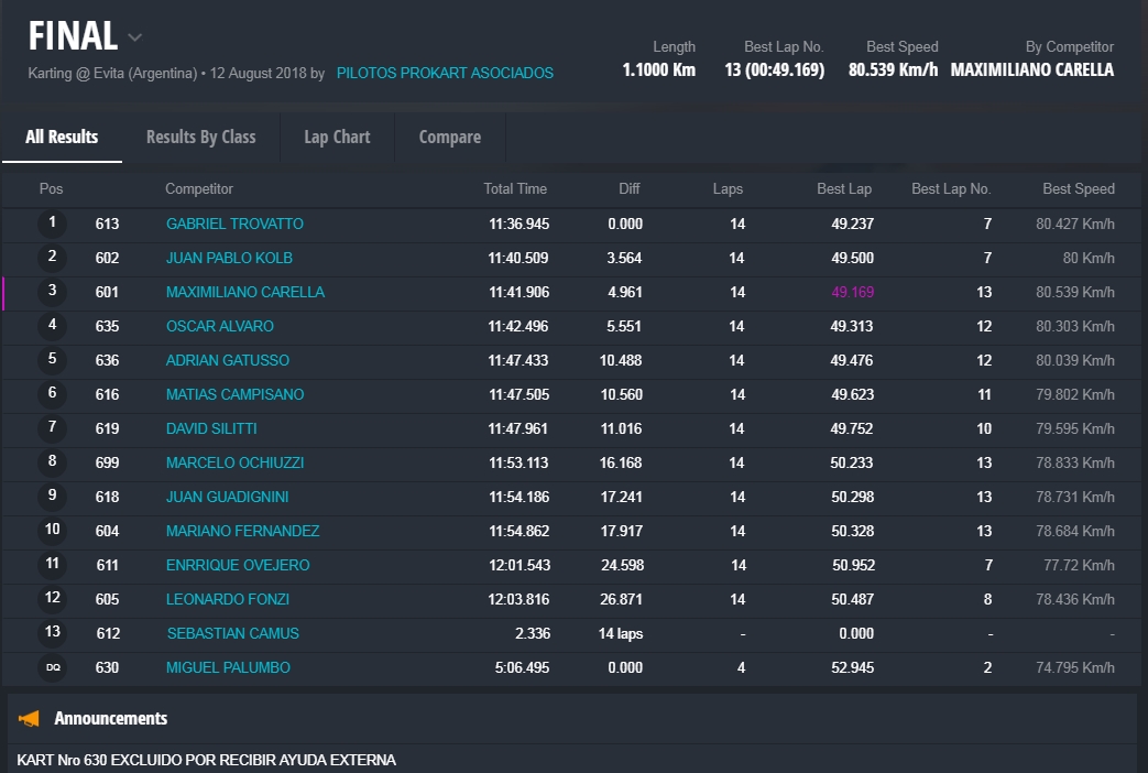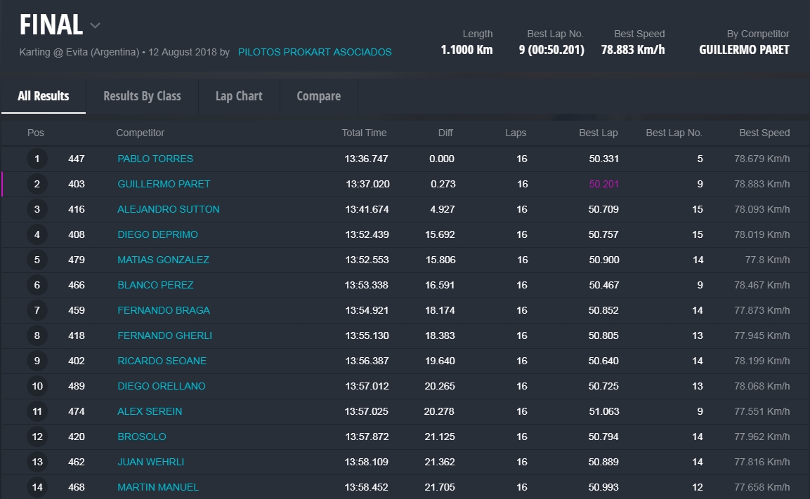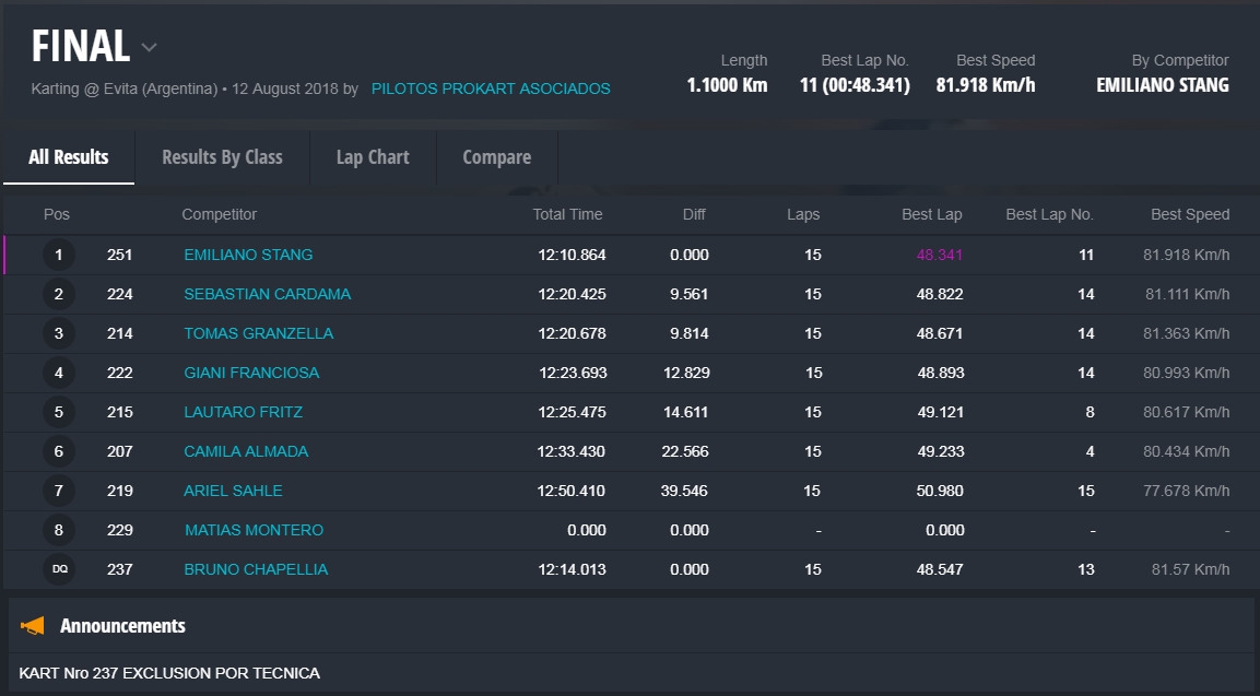 La próxima carrera será el 2 de setiembre en el trazado número 1 de Buenos Aires.