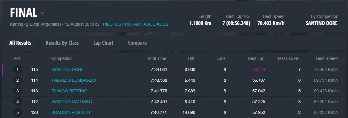 PROKART. Resultados de una nueva fecha de temporada 2018 en Evita