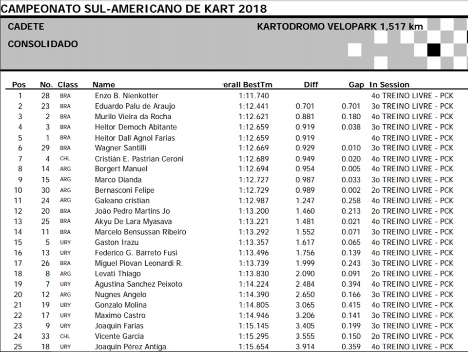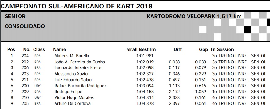 Hoy jueves comenzó la actividad en pista del Sudamericano CODASUR 2018 que se lleva a cabo en el Kartódromo de Velopark, en Brasil, con 113 pilotos provienentes de 6 países.