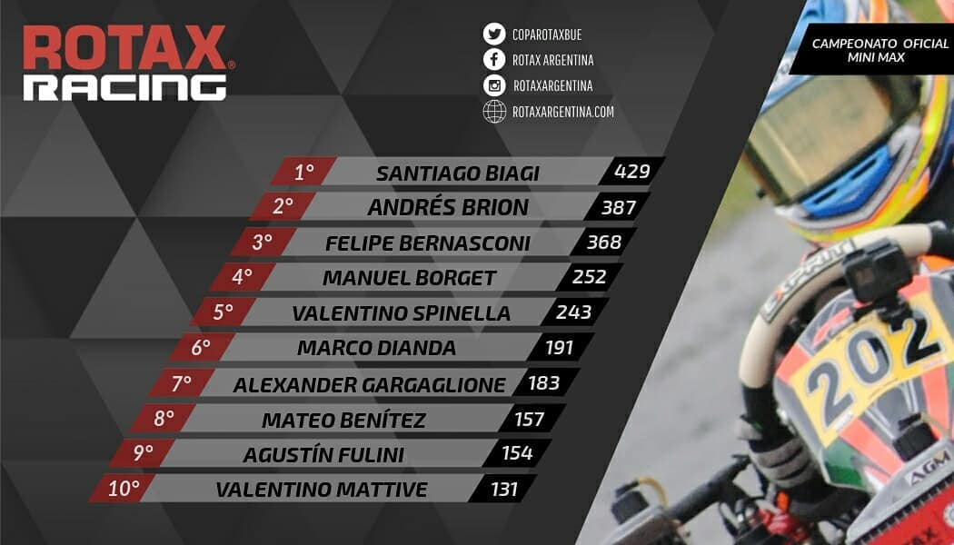 Te mostramos como marchan los campeonatos oficiales de cada divisional, recordando que hay 8 tickets para la Grand Finals Rotax de Brasil que se la llevarán los campeones.