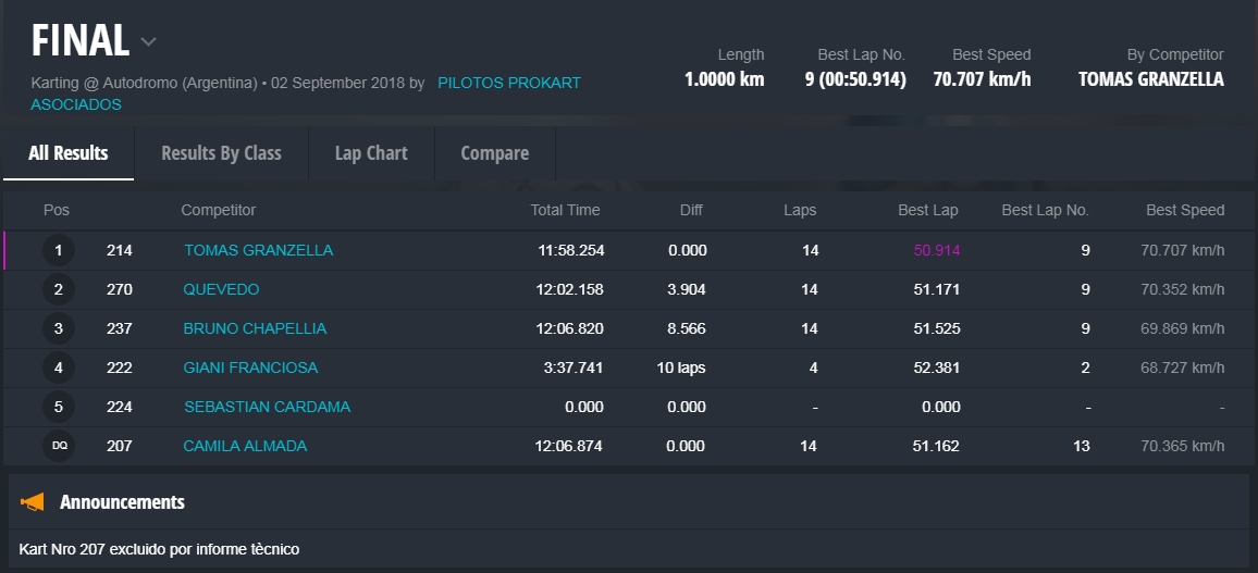 PROKART. Visitó Buenos Aires con triunfos de Karalis, Granzella, Carella y Paret