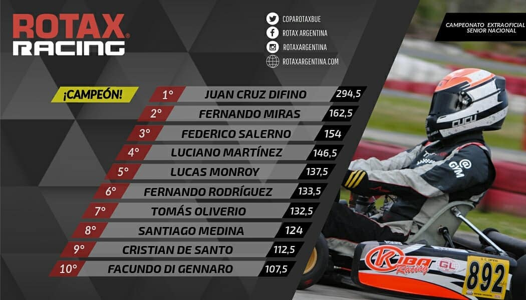 El sexto round de Rotax Buenos Aires dejó mucho para hablar, porque la Vuelta Joker dio resultados que hicieron varias los campeonatos y ya se conoce el primer campeón: Juan Cruz Difino (Senior Nacional).