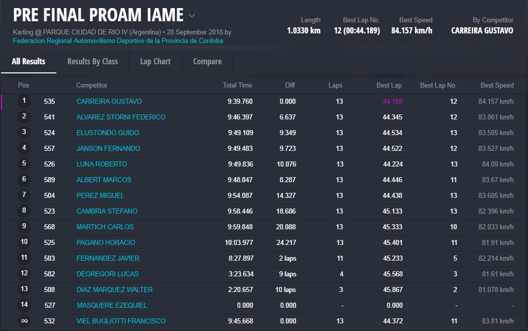 La provincia de Córdoba fue escenario del segundo evento (fechas 3 y 4) del Campeonato Argentino de Karting 2018, que presentó 79 pilotos distribuidos en 5 divisionales.