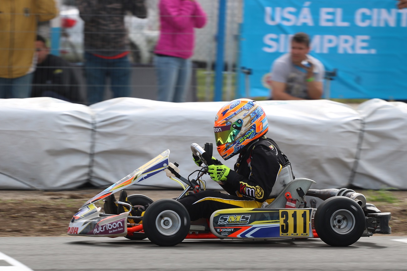 Envío saludos a Gonzalo, Maxi, a todo el equipo SMS Racing Kart, mi papá, a Cebolla, mis hermanas y a mi mamá que me hizo el aguante desde casa.