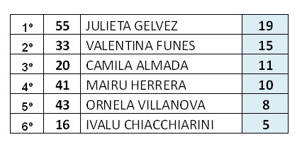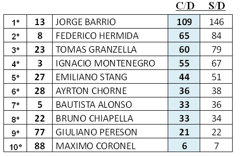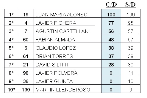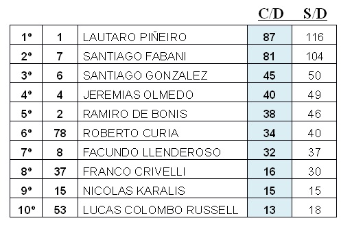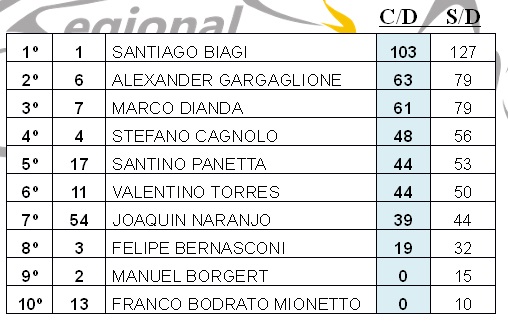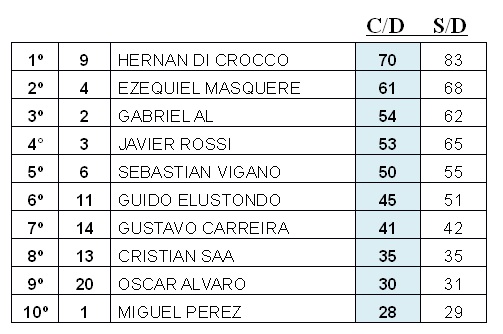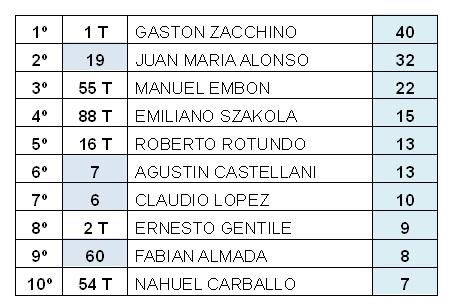 Los pilotos que aparecen en la columna celeste con 0 (cero) son los que tienen 2 o menos competencias corridas hasta el momento.