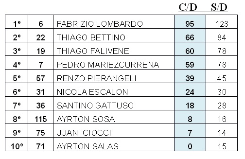 Esta doble fecha sirvió para que se estire la diferencia del 1º LOMBARDO al 2º BETTINO y para que el referente de la fecha FALIVENE, ahora sea nuevo 3º.