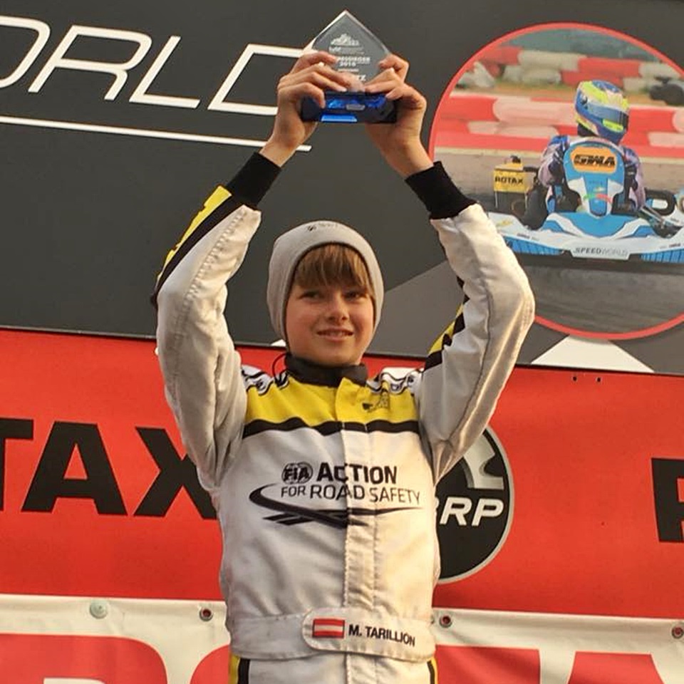 Maxi Tarillion se consagró hace dos años en la clase Micro Max, el año pasado lo hizo en Mini Max y pudo disputar el “Mundial Rotax” de Portugal, mientras que ahora nuevamente gritó “campeón”, pero en Junior Max. Este año además, Maxi corrió el torneo CIK FIA Academy Trophy visitando Francia, Italia y Bélgica.