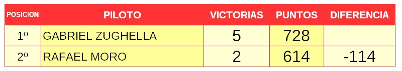 Otro que está con un pie en el avión hacia Brasil es Zughella, que con sumar bien en las mangas, el mismo sábado puede llegar a conseguir los puntos necesario para gritar campeón, aunque, Moro todavía tiene chances.