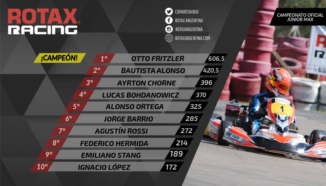 Aquí no hay secretos. Otto Fritzler ya esta campeón, tiene el ticket al mundial listo y por tercer año consecutivo es el mejor de la Junior Max junto al team Dynamic Racing. El año pasado fue 4º en el mundial de Portugal, ahora quiere revancha!