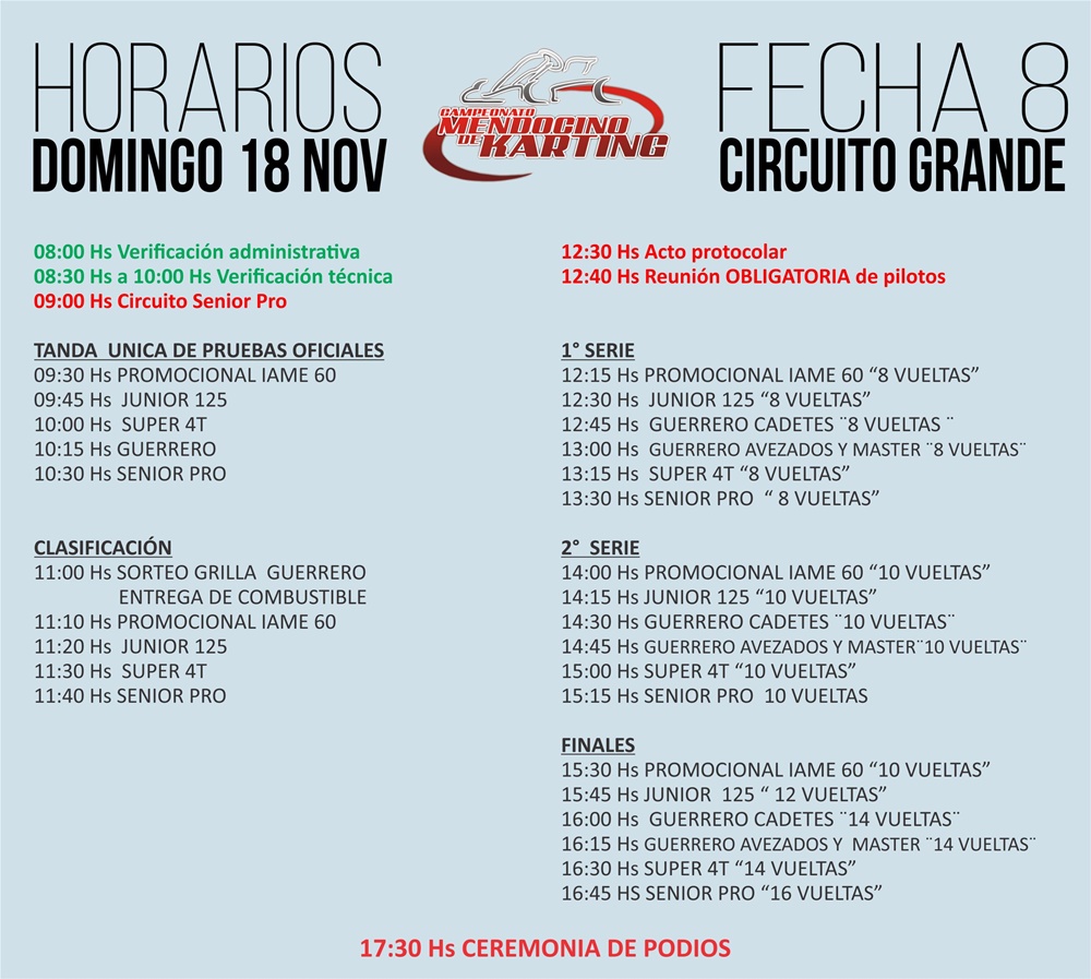 DOMINGO ::: Se realiza la Fecha 8 (circuito grande) y finaliza el campeonato anual.