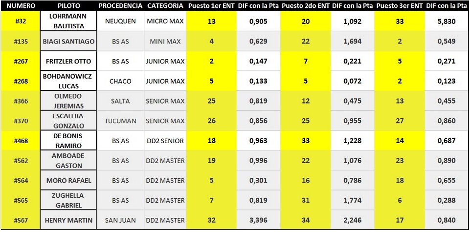 El lunes hubo tres prácticas para cada categoría y el martes continúa con igual programación, donde se destacan los puestos 2 de Santiago Biagi (Mini Max) y Lucas bohdanowicz (Junior Max).