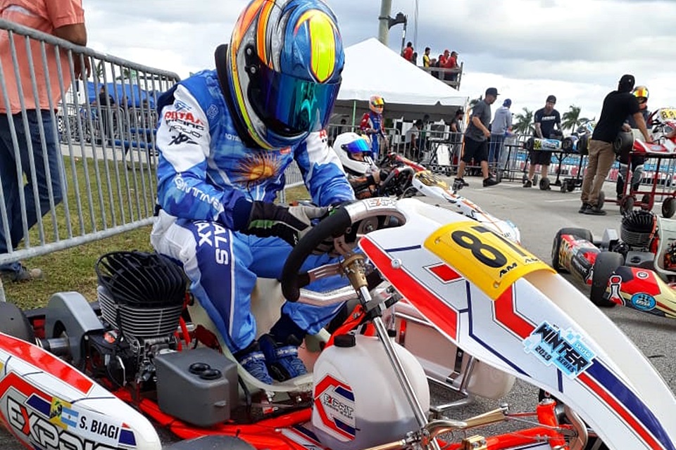 El piloto de Merlo (Buenos Aires) integró el equipo AM Racing Kart de Ariel Castro (argentino radicado en USA) y lo atendió en pista Leandro Agüero. Lo mejor de Biagi fue el sábado cuando hizo la “pole position” entre 18 pilotos. Luego fue 4º en las dos carreras. En la fecha 2 del domingo clasificó 7º y nuevamente terminó en el top ten.