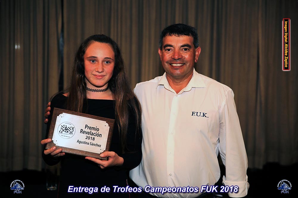 Respecto a la Revelación, los Neutrales de la FUK premiaron de manera unánime a la jovencita AGUSTINA SÁNCHEZ. Tuvo repentinamente un gran 2018 consagrándose Sub-Campeona Nacional en Cadetes; campeona en la misma categoría en dos certámenes Regionales y cerró el año con una gran victoria en el Gran Premio Ciudad de Montevideo.