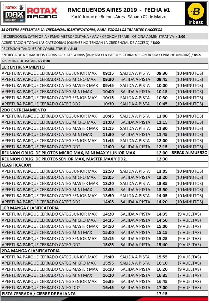 Horarios y datos para la apertura de Rotax en Baires