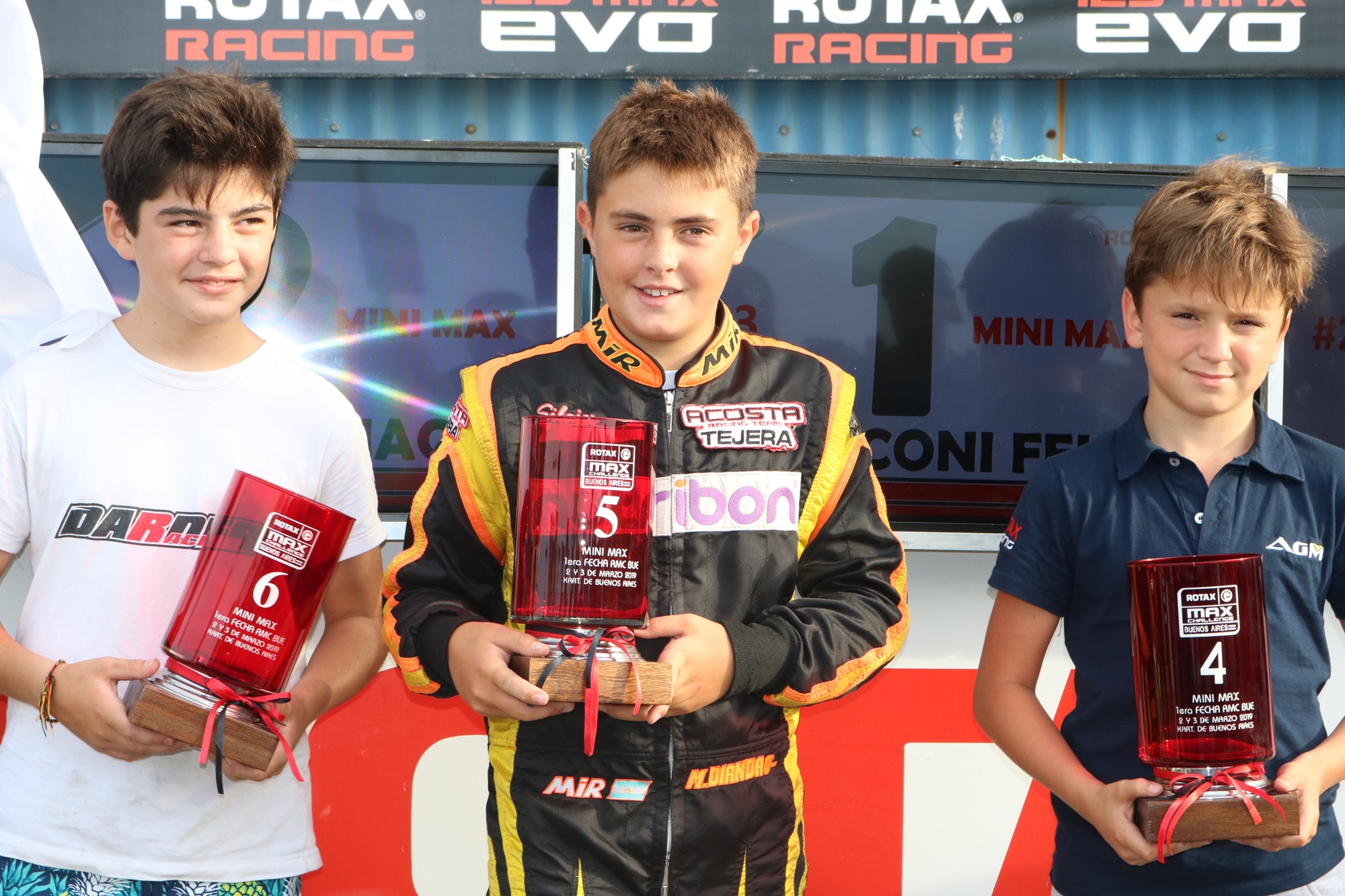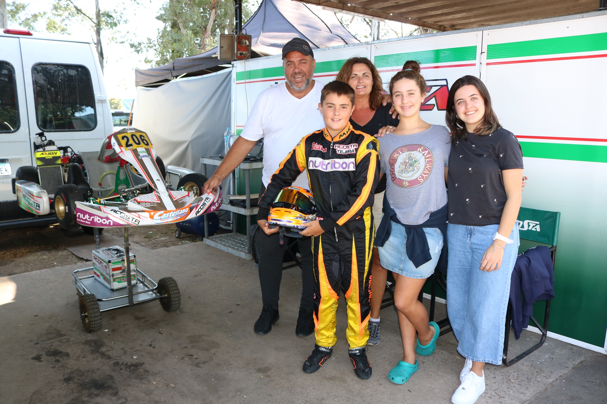 Quiero agradecer a y saludar a toda mi familia que estuvo en al carrera, a mi papá, mi mamá, mis hermanas Coni y Francina, también a mi abuela, a mi profesor de Educación Física, al equipo Acosta Racing Kart, a la gente de Guatimozín y mis sponsor Castellano Power Battery, Silajes Dianda y Nutribon.