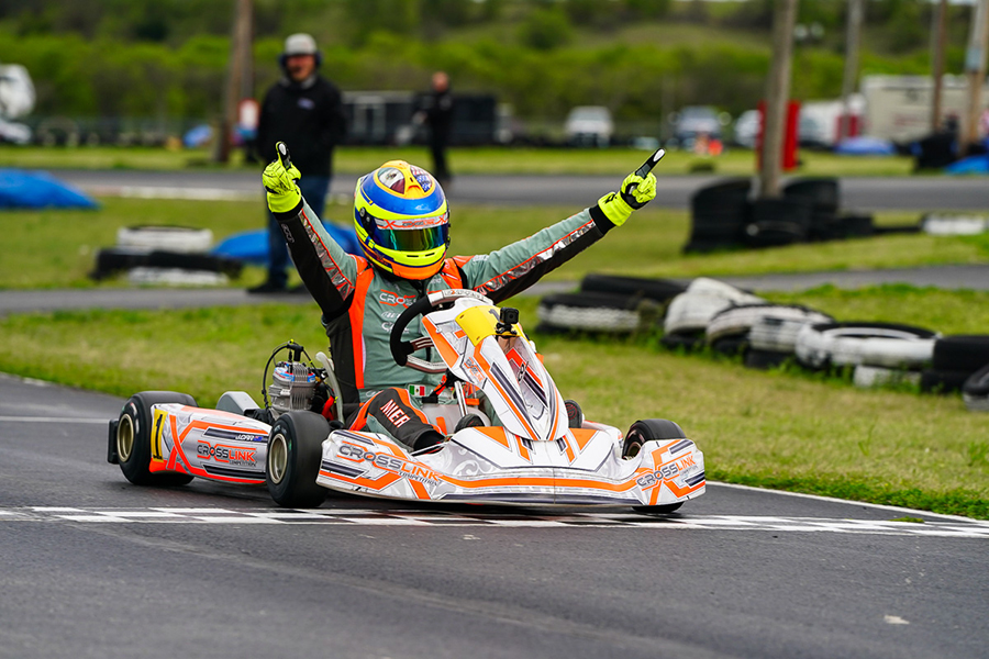 Miguel Mier festeja su triunfo en la fecha 1 de Texas ProKart Challenge en el trazado North Texas Kartway, en Denton (foto: Ken Johnson/EKN)