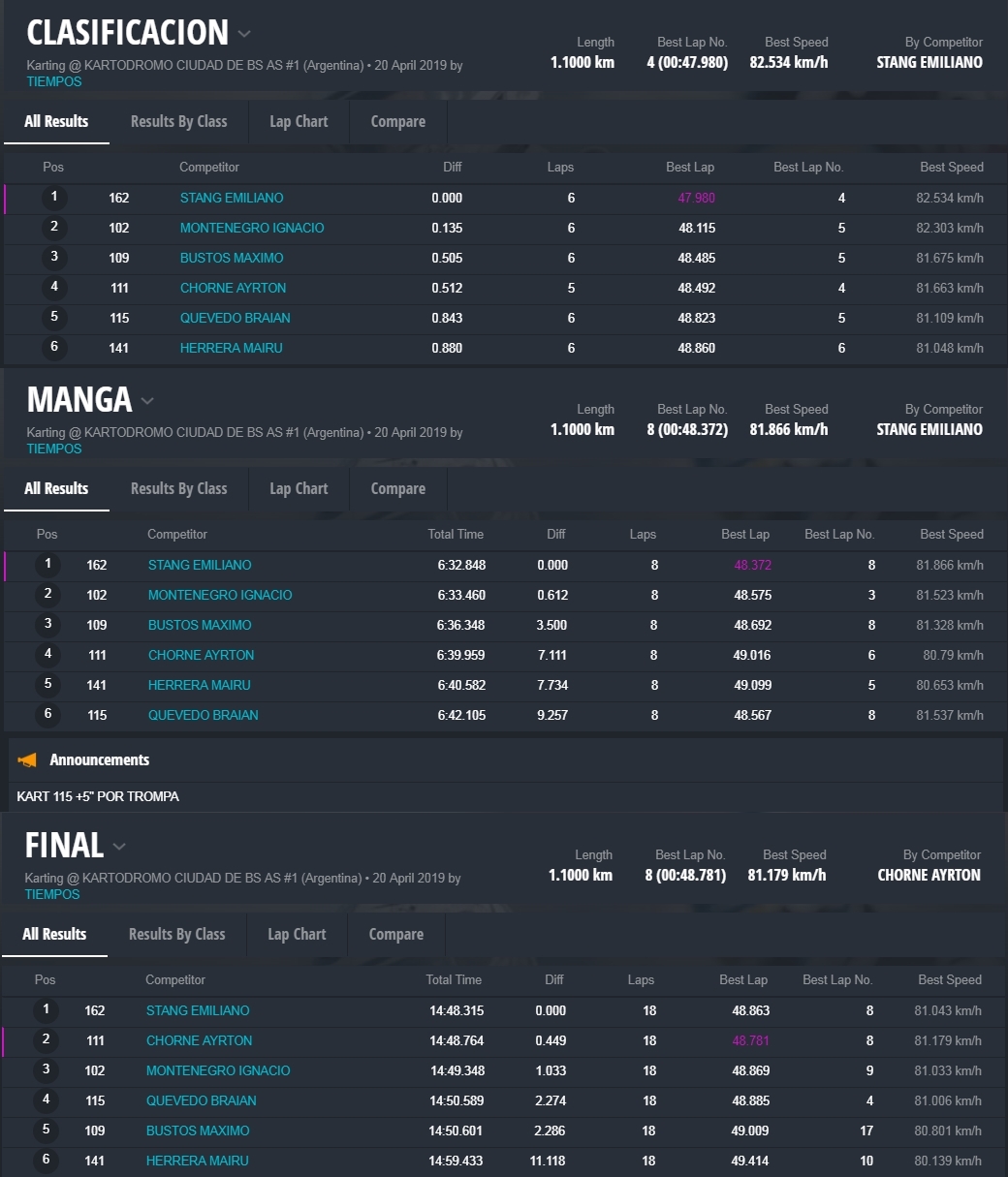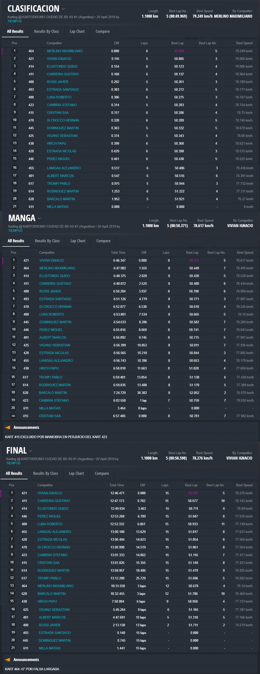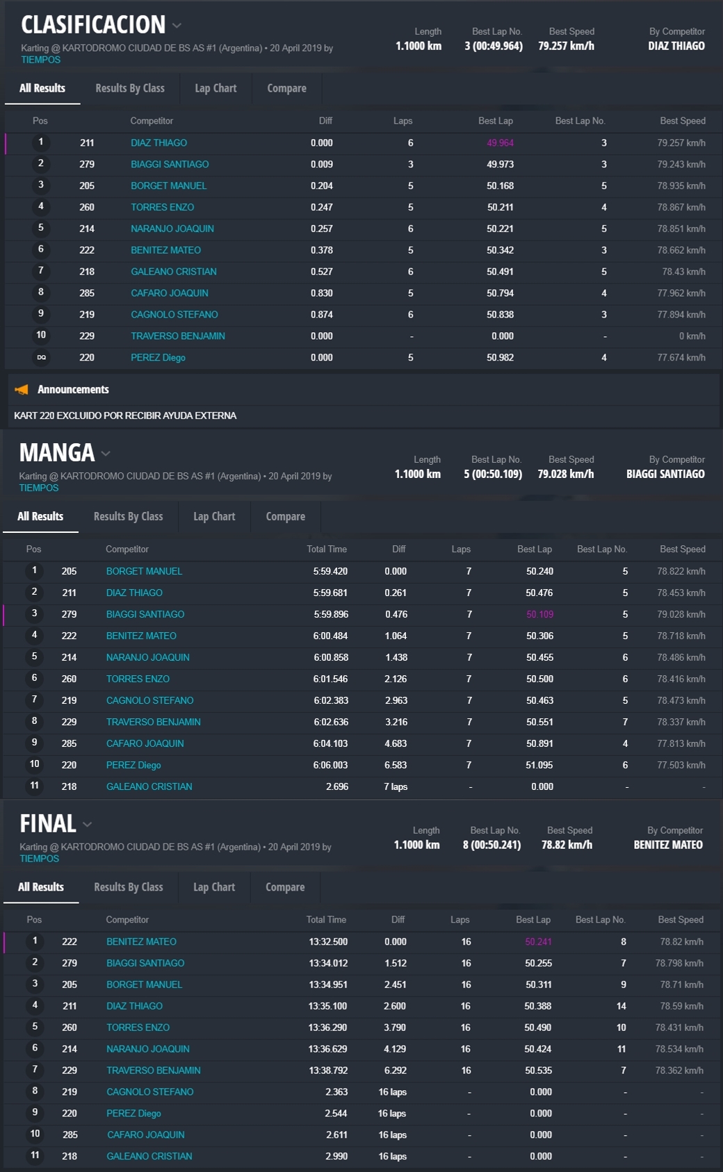 FECHA 3. Como en la primera fecha, Angelo Nugnes fue el ganador en Cadetes, mientras que en Pre Júnior hubo nuevo ganador Mateo Benítez, al igual que en Junior donde venció Emiliano Stang. La Senior quedó para Santiago Fabani y en Proam consiguió su tercera victoria al hilo, Ignacio Vivian. Martín Rodríguez fue el ganador en Nacionales.