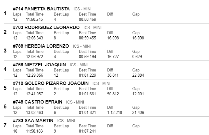 Completó el podio el cordobés Marco Dianda, que creció un puesto, dejando atrás a Santino Panetta. Luego se ubicaron Mariezcurrena, Díaz y Gattuso.