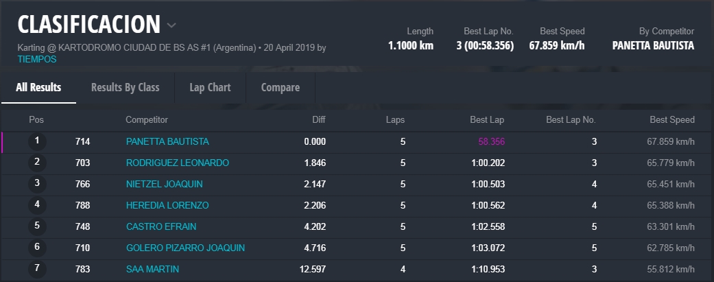 El cuarto lugar fue para Joaquín Nietzel, hijo de Juan Martín que compite en Senior. Luego se ubicaron Joaquín Golero, el sanjuanino Efraín Castro y Martín Saa.