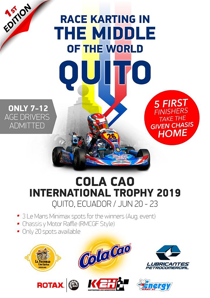 Cola Cao International Trophy 2019 se llevará a cabo del 20 al 23 de junio en el Kartódromo 2 Hemisferios de Quito, en Ecuador.