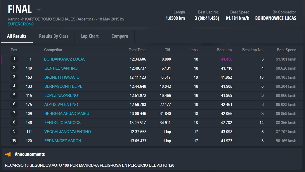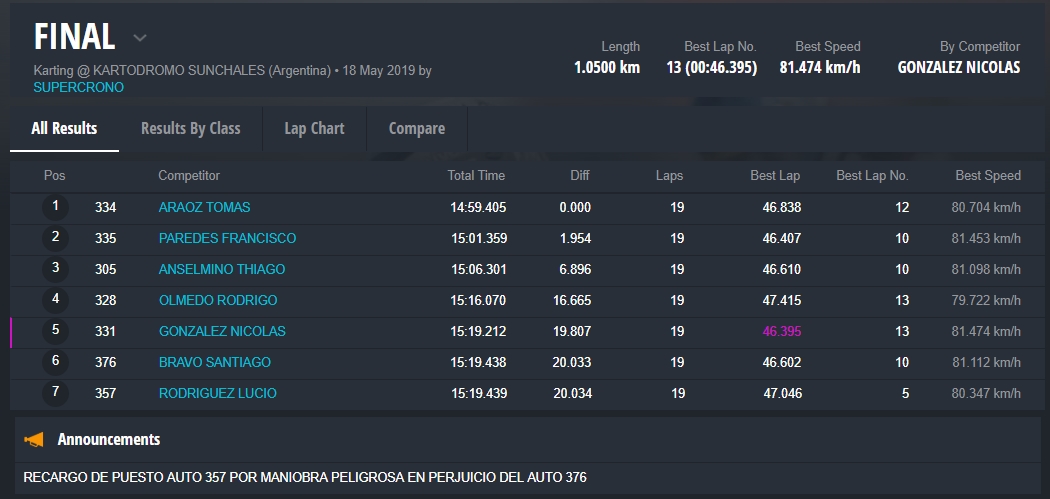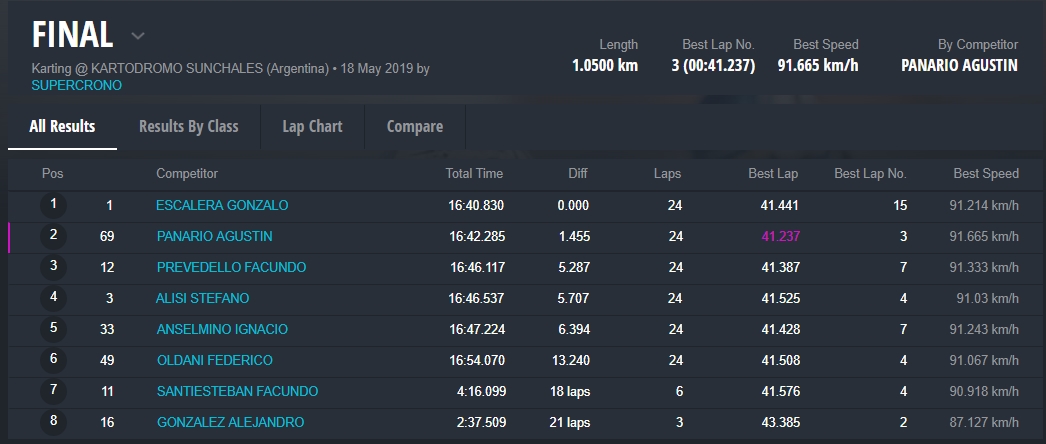 En la final, tuvimos una tremenda lucha en todos los sectores del trazado Sunchalense y en todas las posiciones, alzandose con la victoria Tomas Araoz, 2do fue Francisco Paredes y 3ro, Thiago Anselmino.