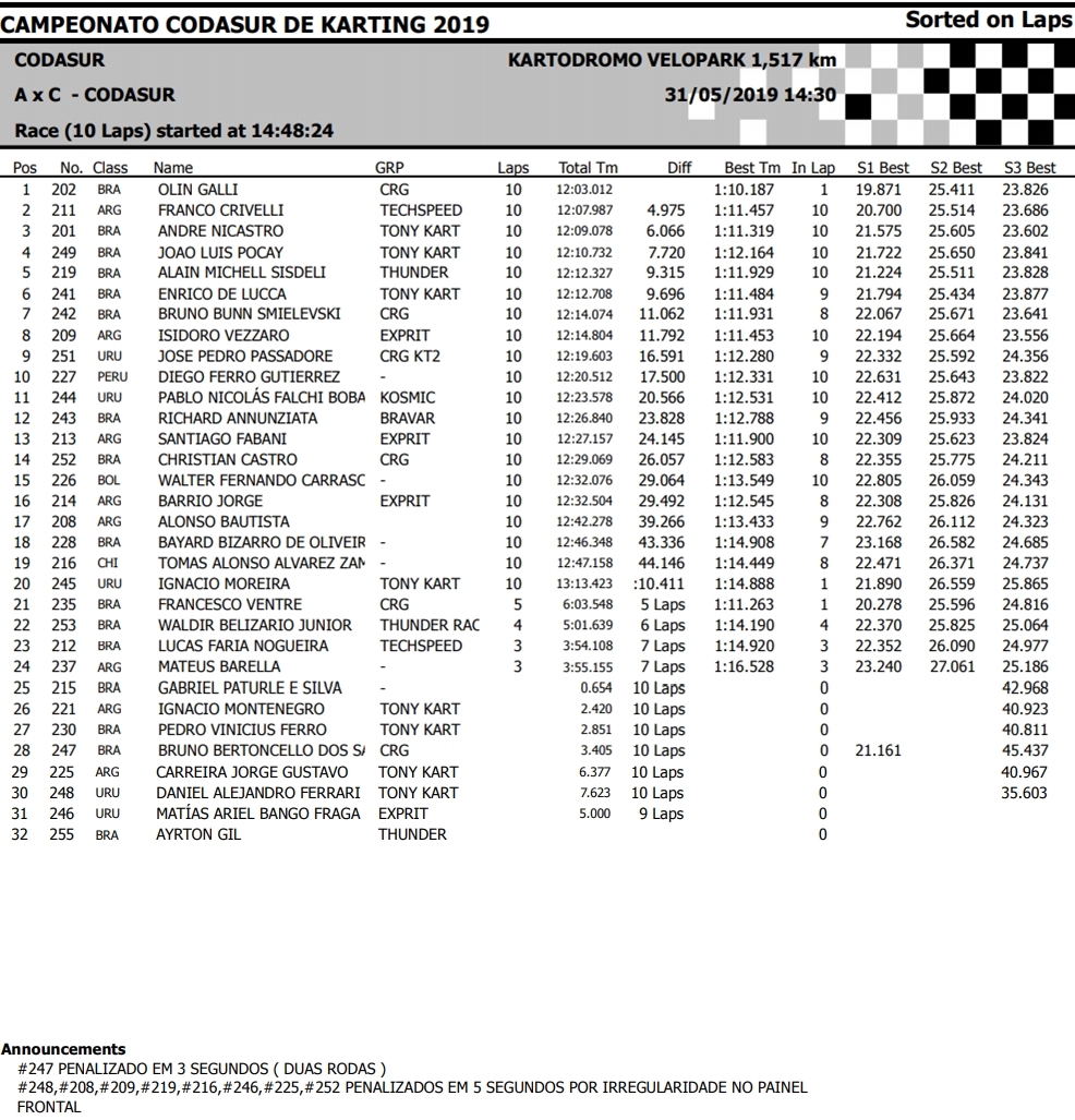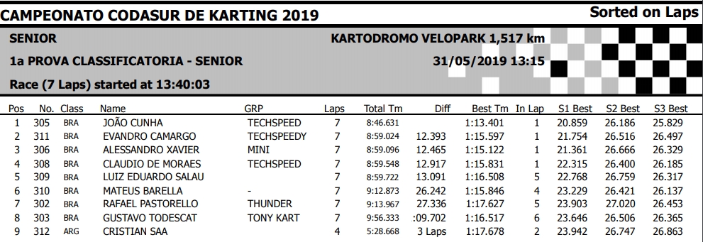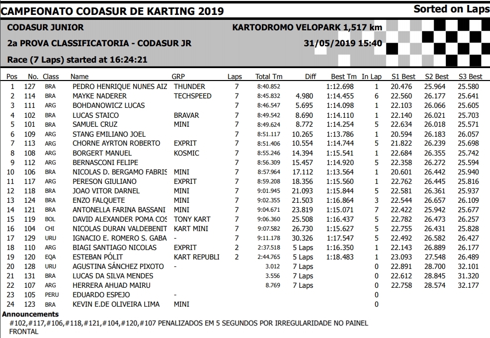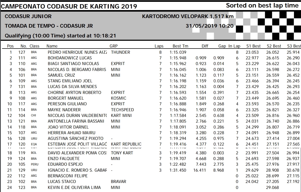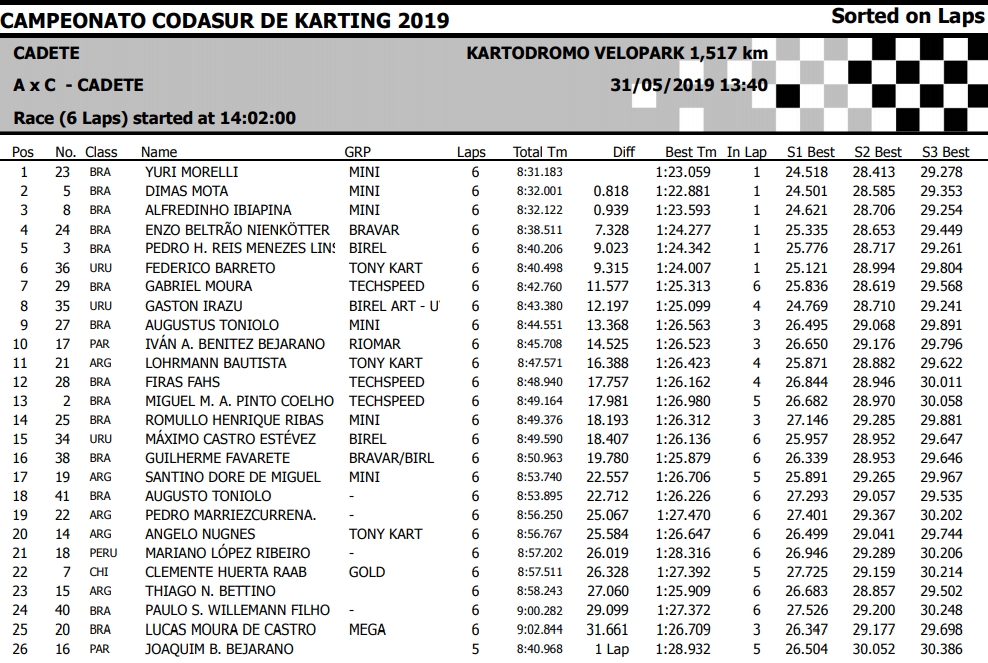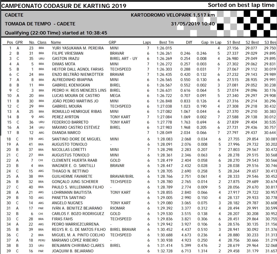 Al final del día, se sumarán los puntos para ver quienes quedan fuera de la actividad del sábado en las categorías Cadete y Codasur, limitada exclusivamente a 36 pilotos.
