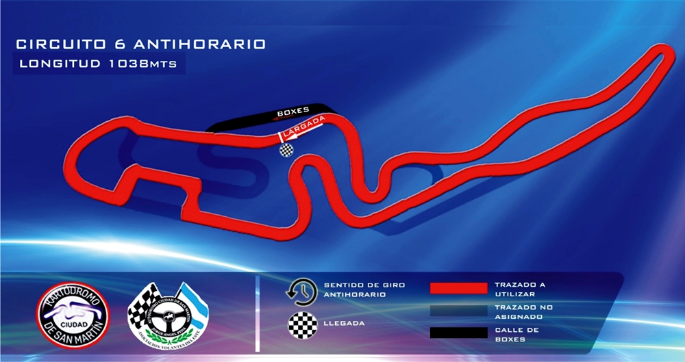 En esta carrera se estrenará el “circuito Nº 6 en sentido anti horario” que es totalmente desconocido para todos los competidores y es la primera vez que se girará en este sentido en el Kartódromo de San Martín, además de usar dos nuevos empalmes.