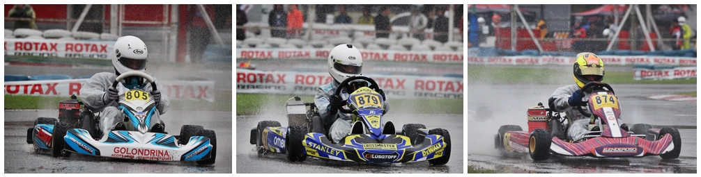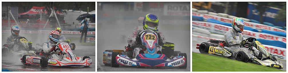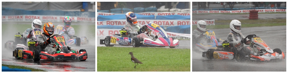 El domingo, como se había pronóstico, hubo lluvia todo el día, diluvio por momentos. A esto se sumó el apagón general en todo el país. Pese a todos los inconvenientes, la organización de Rotax siguió adelante. La deportiva suspendió los “warm up”, disputó un parte de las terceras series, la actividad de las categorías nacionales y todas las finales con el 75% de las vueltas. Se acortaron todas, tal como lo permite el reglamento, para poder cumplir con la fecha. Se suspendió el acto protocolar y la actividad pudo desarrollarse por completo.