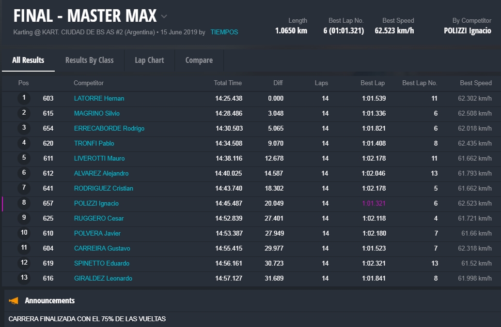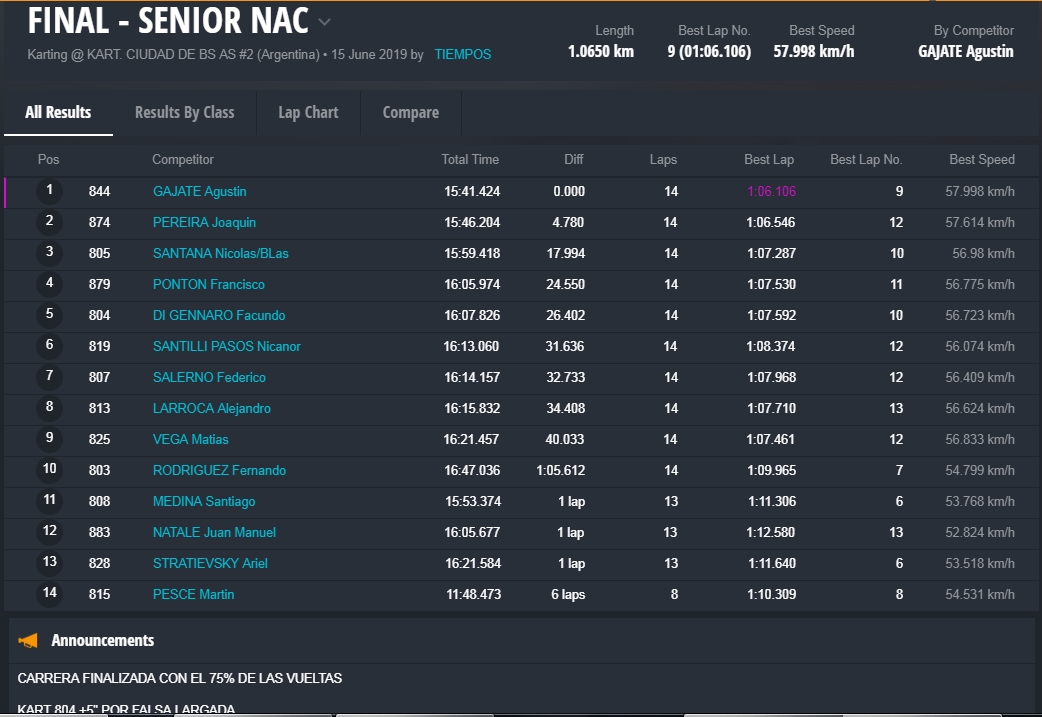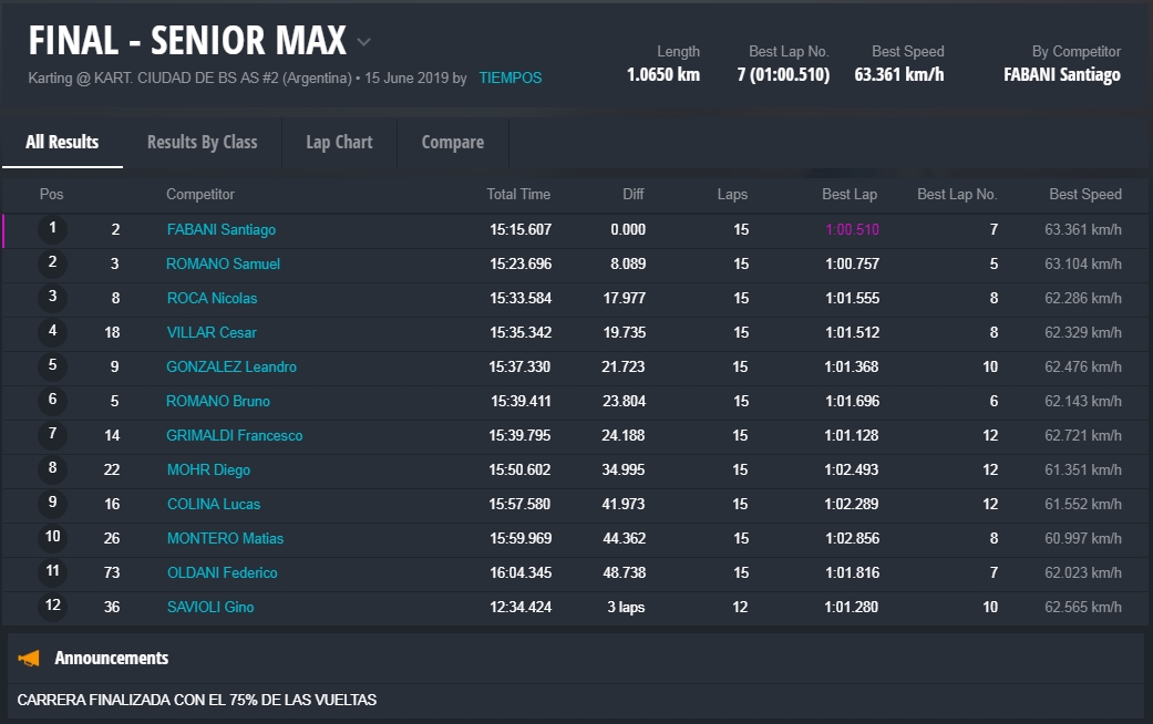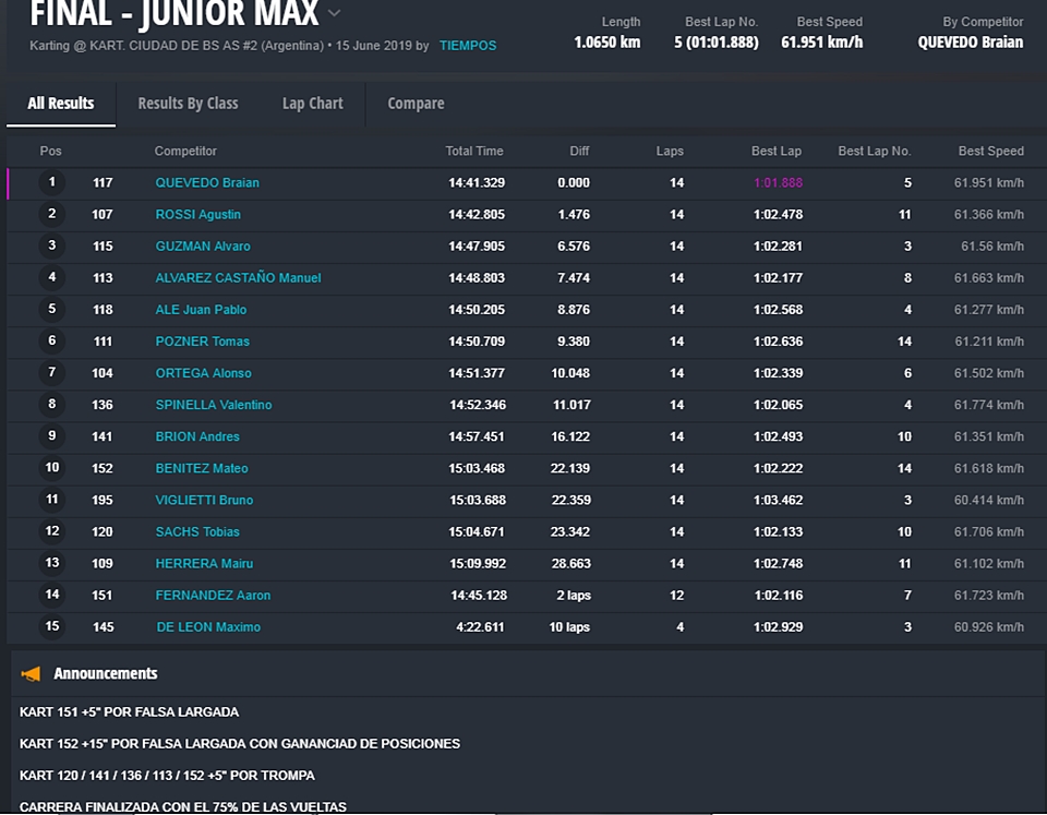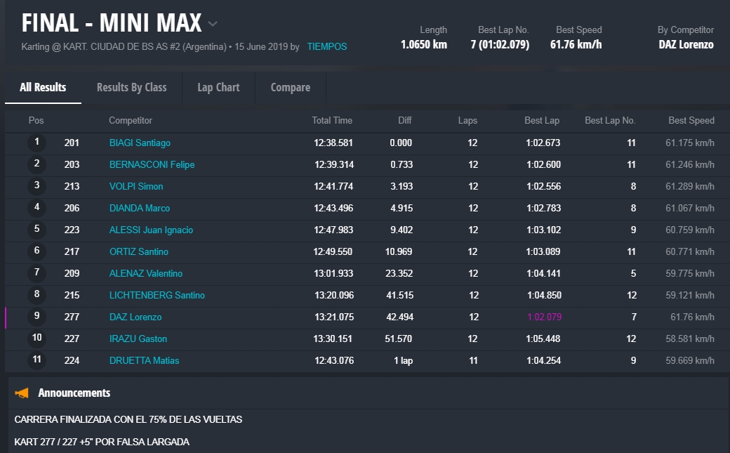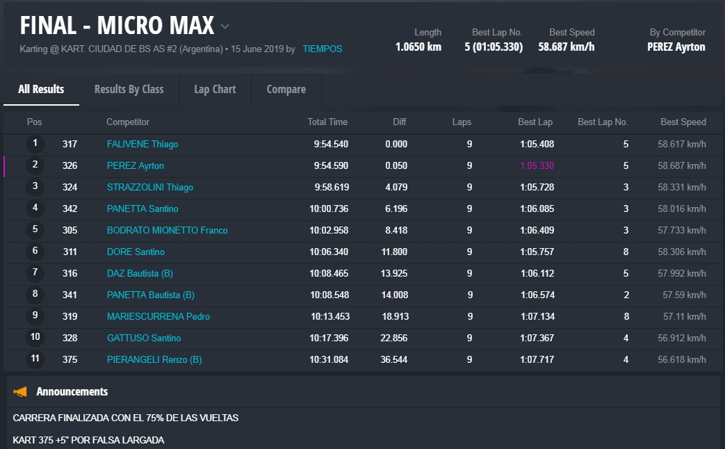 Faltando poco para el final, Falivene hizo una muy buena maniobra para saltar adelante y, pese a los intentos de Ayrton, Thiago pudo mantenerse como líder y recibir la bandera a cuadros. Se padre explotó de felicidad, que mejor regalo que una victoria!