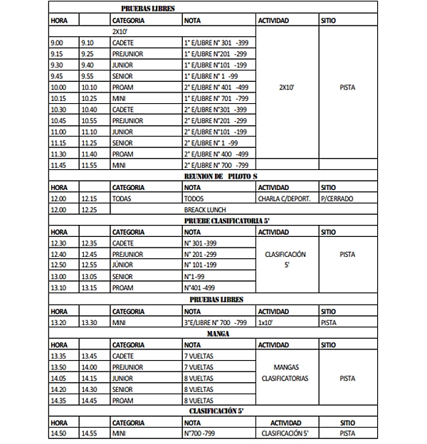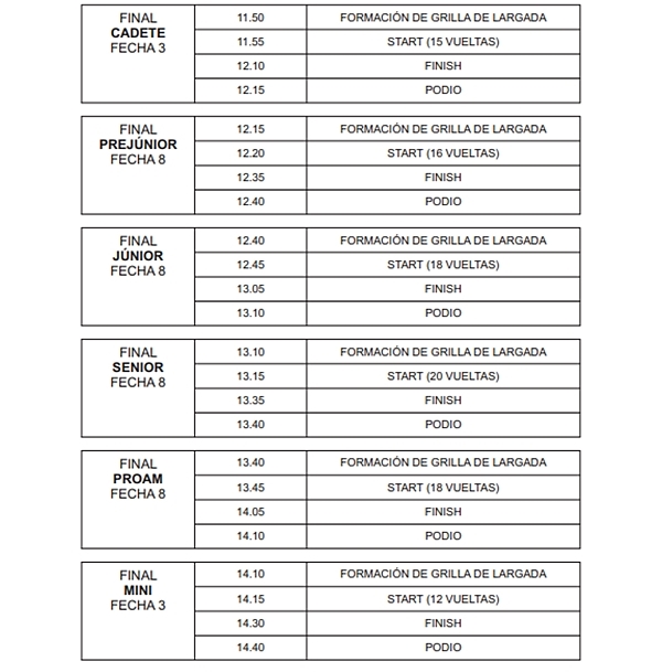 Los campeonatos indican que Angelo Nugnes es líder en Cadete, Manuel Borgert en Pre Junior e Ignacio Montenegro en Junior. Jorge Barrio manda en Senior y “Nacho” Vivian lo hace en Proam.
